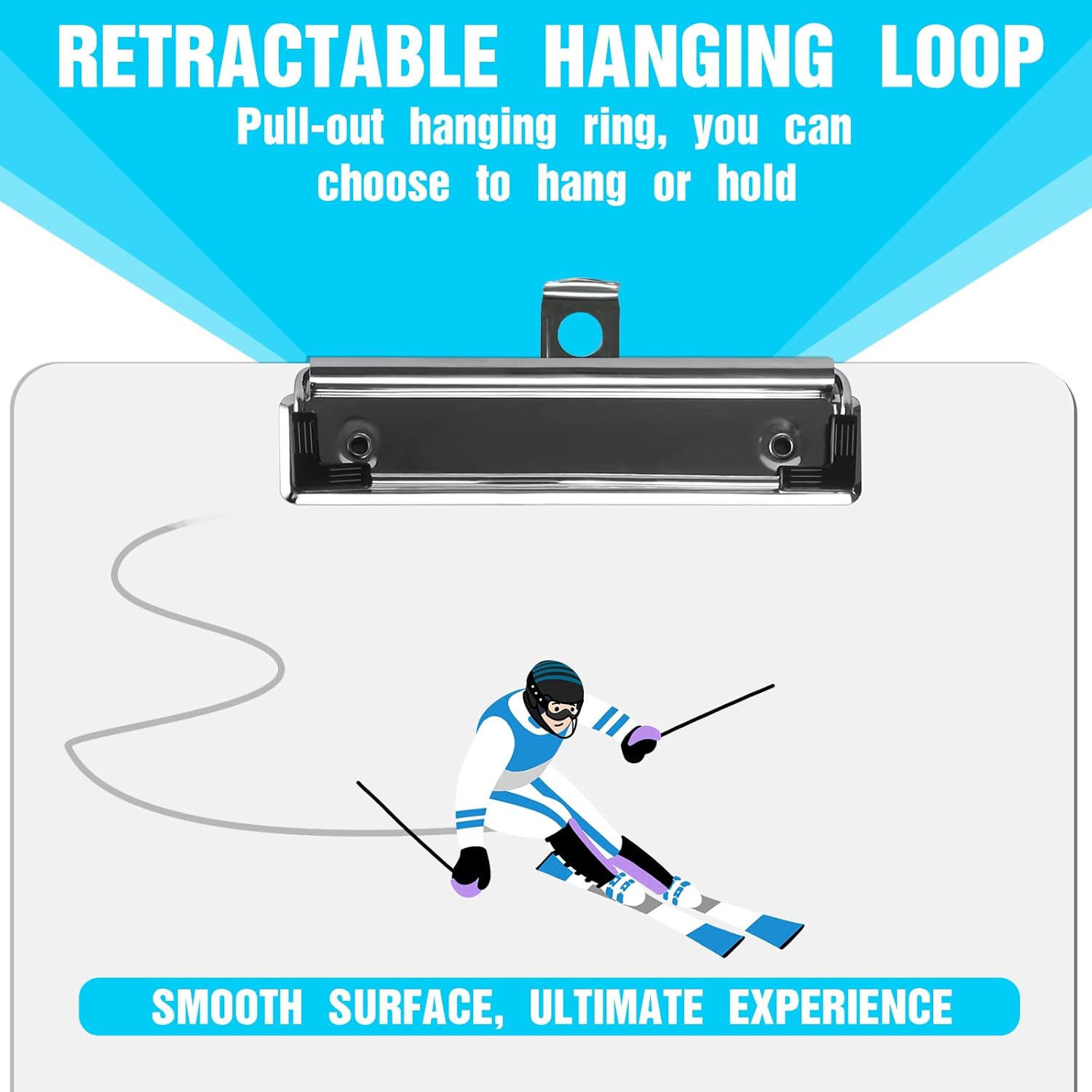 - RETRACTABLE HANGING LOOP: The clipboards have a built-in hanging hole, which can help you place your documents randomly. When not using the clipboard , pull out the hanging hook and hang it in a suitable place to save space