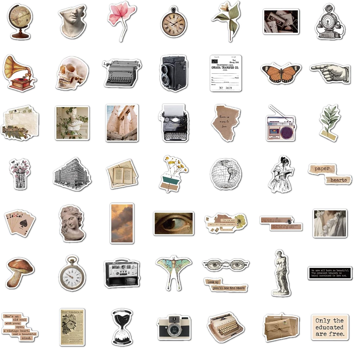 - Size: 50PCS vintage vinyl stickers for scrapbook, stickers size within 2.36'' - 3.14''. Easy to use, peel off the background before using and stick it on the surface you want.