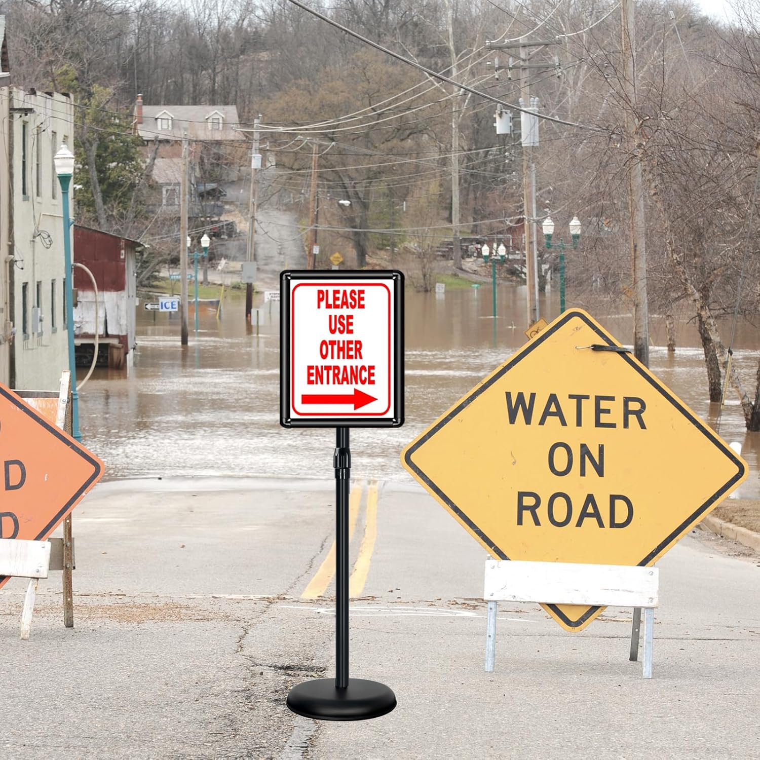 - ✅Sturdy & Stable: The material of the poster frame is aluminum and the material of the stand pole is stainless steel. Besides, you can add water and sand into the rubber base to increase stability.