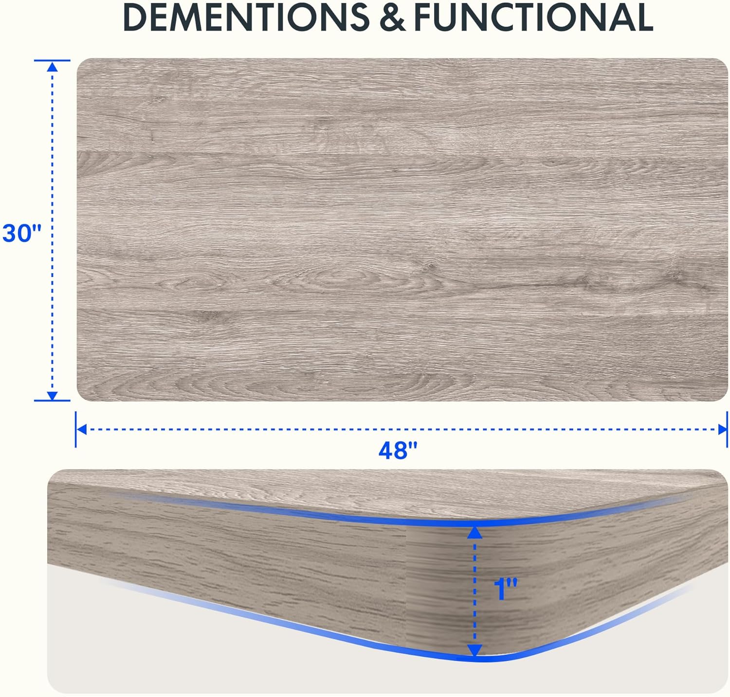 FLEXISPOT EN2 Whole-Piece Standing Desk with Clamp Power Strip, 48 x 30 Electric Stand Up Height Adjustable Desk with Cable Management (Black Frame + 48" Gray Wood Grain Desktop, 2 Packages)