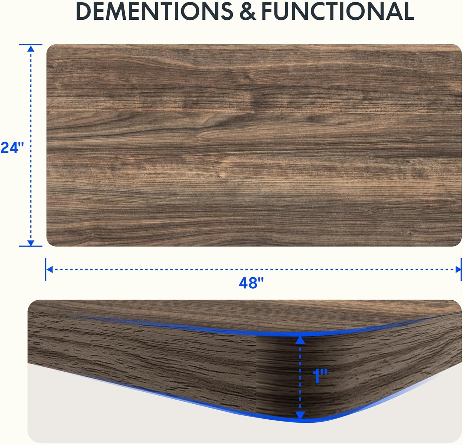- AMPLE WHOLE-PIECE DESKTOP: With its whole-piece 1” eco-friendly desktop, this standing desk provides plenty of room for your computer setup, documents, and accessories, creating a well-organized and productive work environment. Due to hand measurements, desktop dimensions may vary slightly by 0 to 1”.