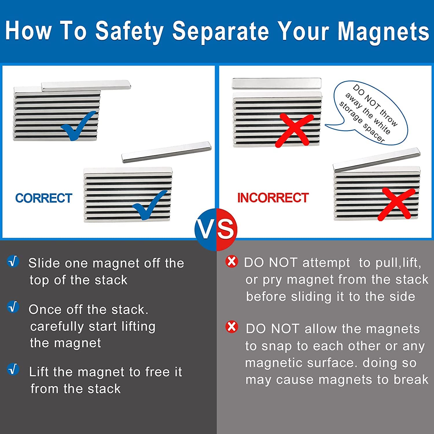 - 【WIDE RANGE OF APPLICATIONS】- Neodymium Bar magnets can be Applied to Refrigerator Magnets, Shower Door, Work or Office, Scientific Purposes, Arts and Crafts or School Classroom.