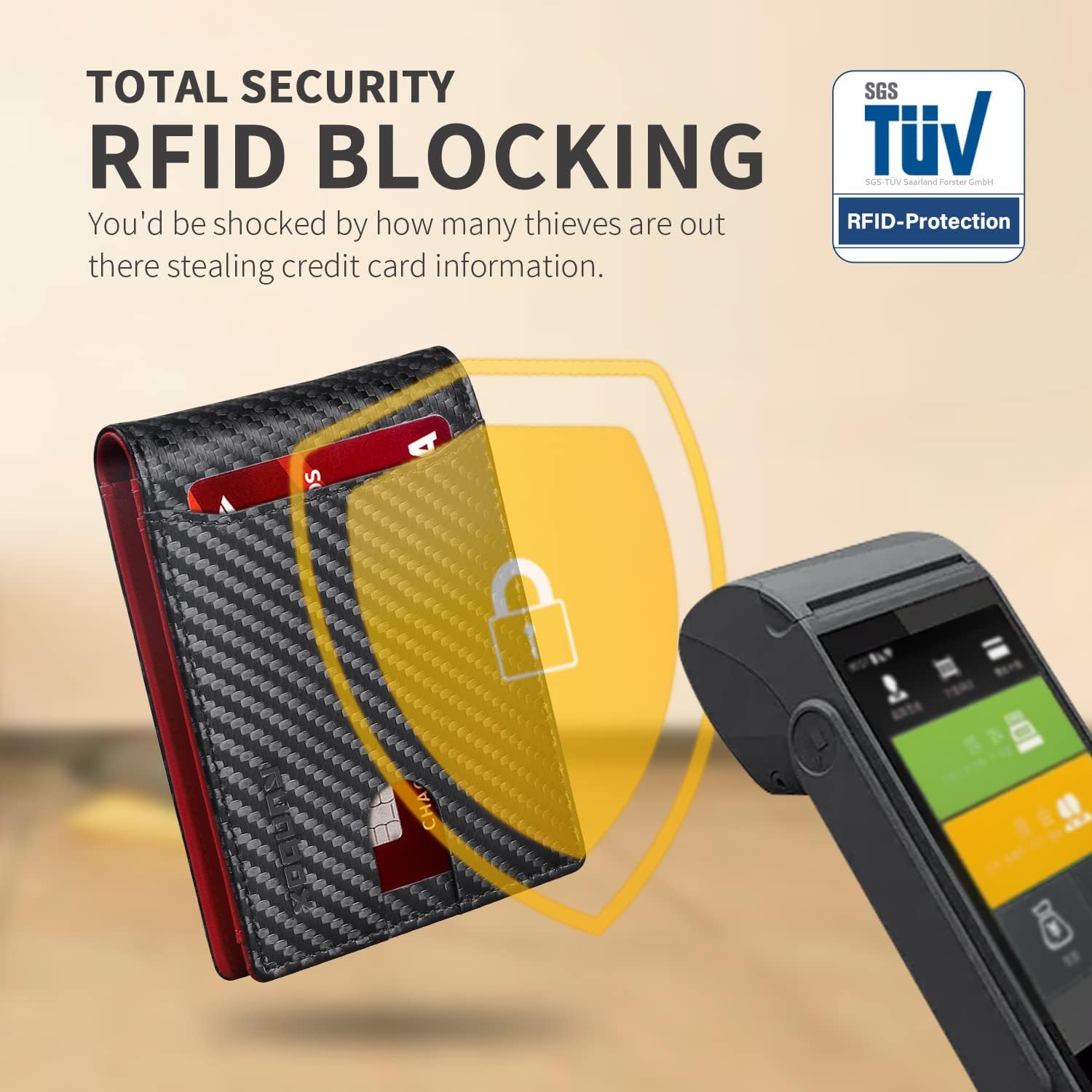 - RFID Blocking - This wallet for men are designed by German designer, made of genuine leather material, durable, wear- resistant and scratch-resistant. Our wallets block the 13.56 MHz band and protect against data theft by RFID scanners