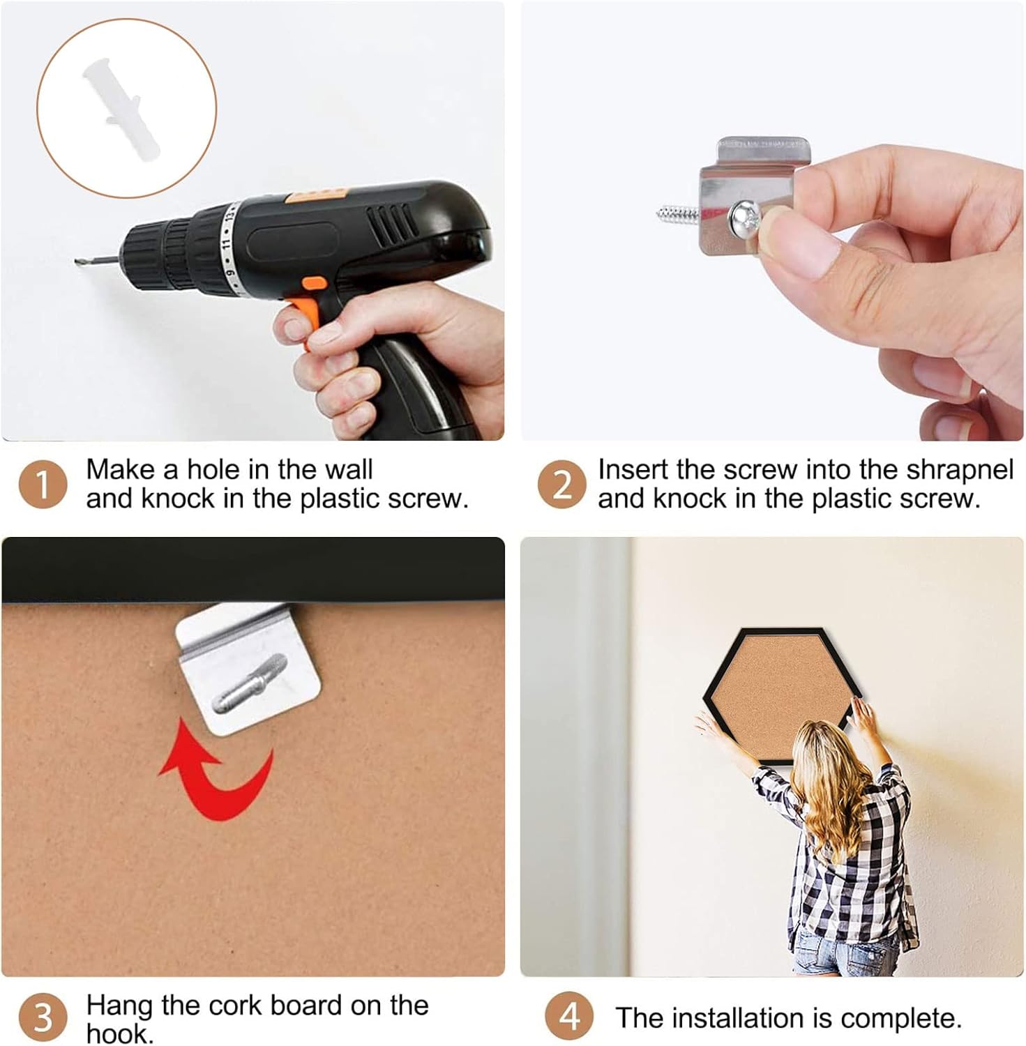 Cork Bulletin Board Hexagon Black, Small Framed Corkboard Tiles for Wall, Thick Decorative Display Boards for Home Office Decor, School Message Board with 16 Push Pin Wood Clips (4 Pack)