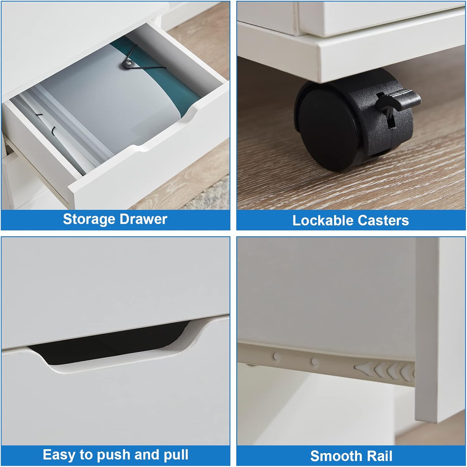 Farini 3-Drawer Vertical Filing Cabinet Rolling Wood Mobile File Cabinets Under Desk for Home Office with Casters (White, Fully Assembled)