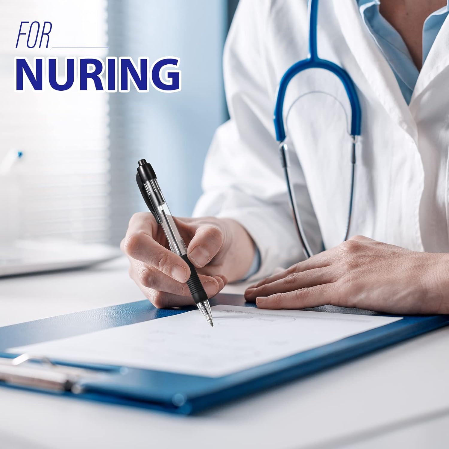 - Retractable Pens with Clip: this soft grip ballpoint pens have a retractable design to avoid the ink from drying out, just press down to use it, never worry about losing the cap; And the retractable pens comes with a clip that allows you to easily secure it in your notebook, binder or pocket for easy portability