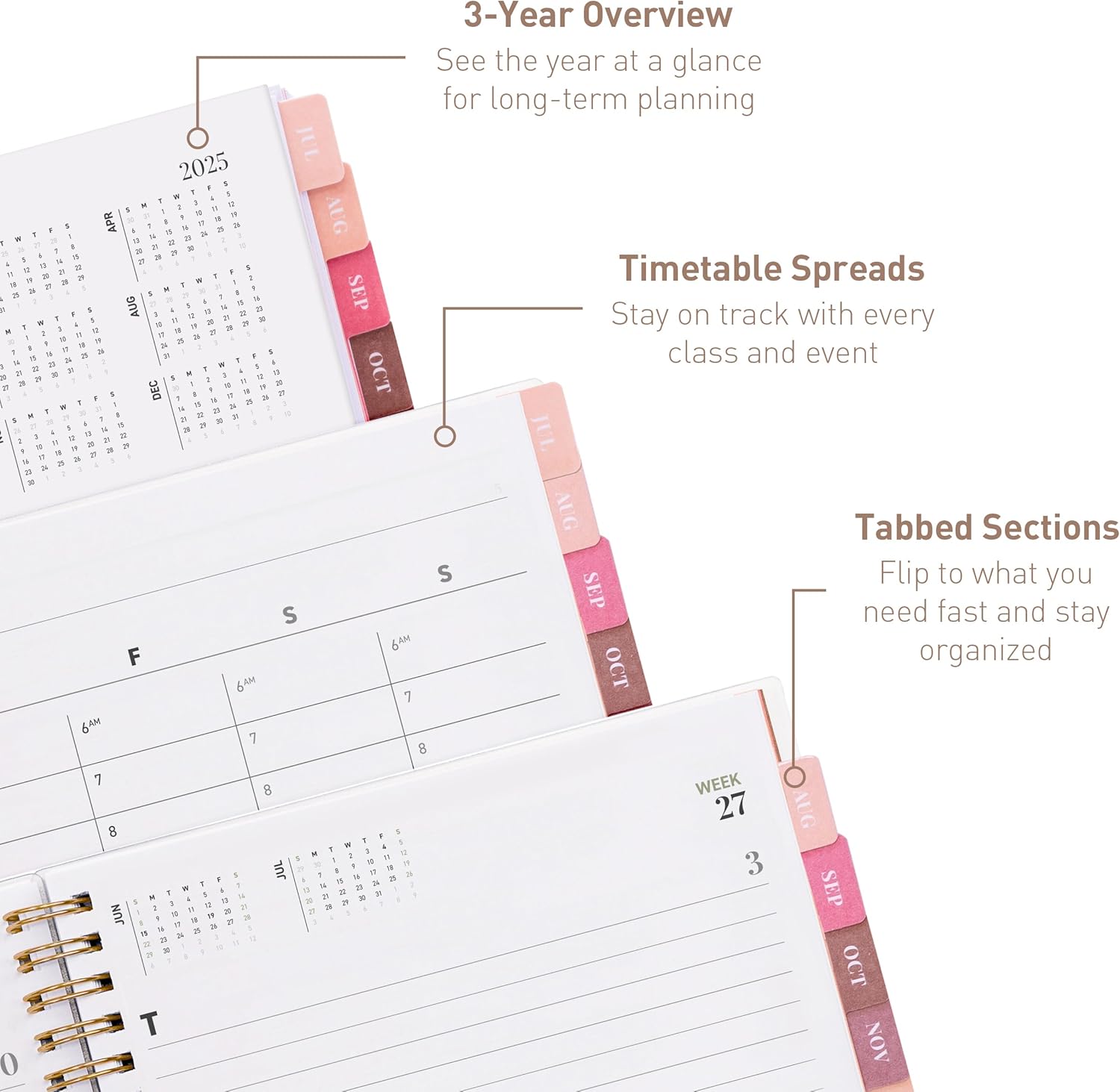 - STAY AHEAD WITH BUILT-IN EXTRAS: Never miss a milestone again. This sleek calendar 2025-2026 includes U.S. holidays, a full 3-year overview, and forward-looking weekly layouts that preview the next month. A reliable 2025 planner that keeps your future visible, from family vacations to project deadlines. Feel the peace of knowing everything’s under control.