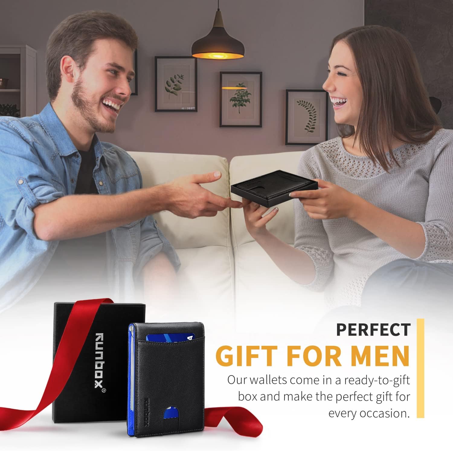 - Perfect Gifts for him: Our minimalist wallets packed with a pretty box, this mens slim wallet is a great present for boyfriend, brother, son, husband, dad, or your male friends on christmas, birthdays, anniversaries, and fathers Day