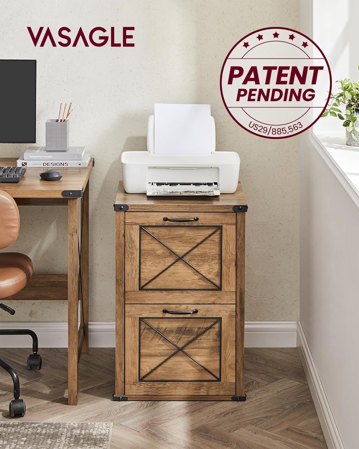 VASAGLE File Cabinet, Filing Cabinet with 2 File Drawers, Printer Stand, Fit A4, Letter Size, Hanging File Folders, Modern Farmhouse Style, for Home Office, Honey Brown UOFC048T41