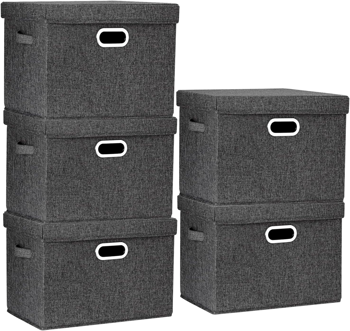 TYEERS Large Storage Bins with Lids, Collapsible, Washable, Fabric Storage Boxes for Organizing, 17.3x11.8x11.4 inches, 5 Pack, Black