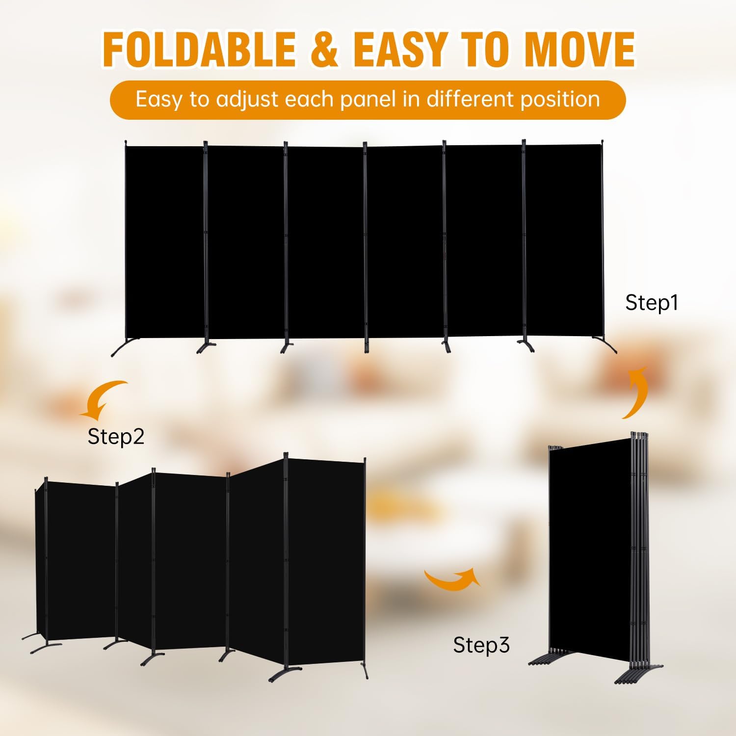 6 Panel Folding Privacy Screens, 6 FT Tall Wall Divider with Metal Frame, Freestanding Room Divider for Office Bedroom Study (6 Panel, Black)