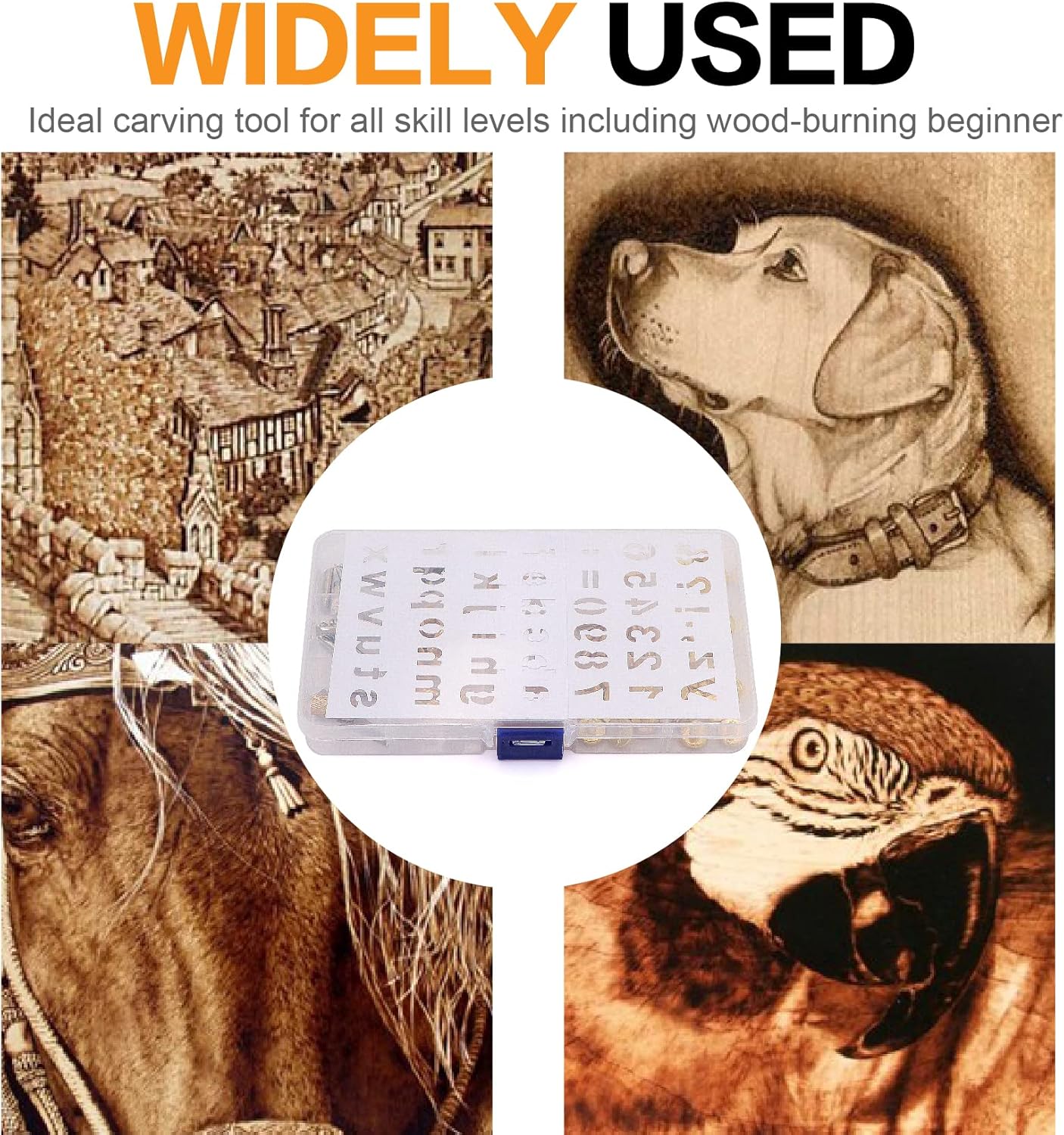 - What you get: 53 various carving/embossing/soldering tips + 26 wood burning letters + 2 PCS pattern stencils for pyrography woodworking + 1 * transparent box