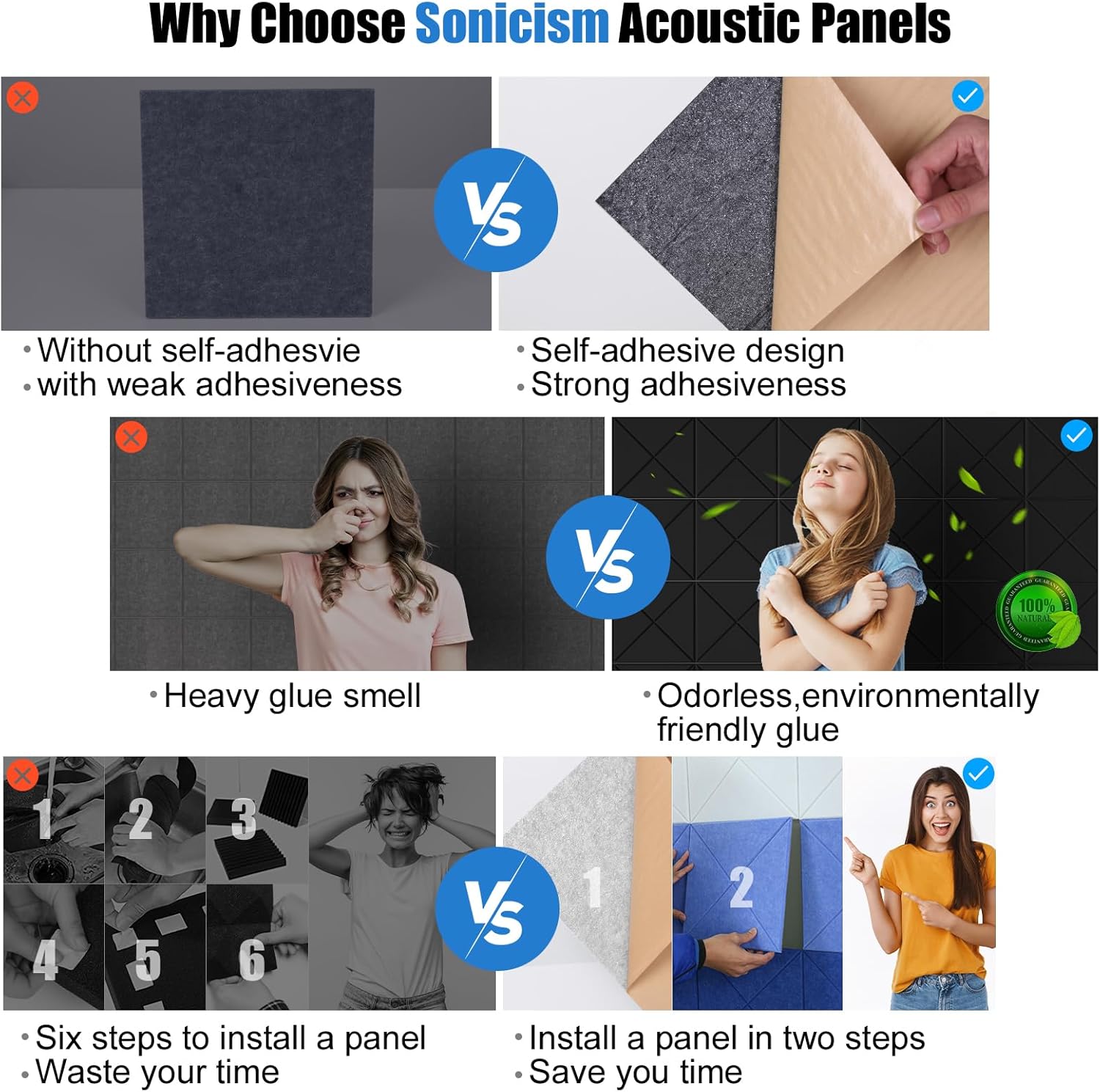 - [Quality & Service Guarantee]: Deeply rooted in sound dampening panels industry for years, Sonicism places great emphasis on product quality and offer prompt sales service. Don't hesitate to contact us anytime with sound proof panels questions. Your satisfaction is our priority