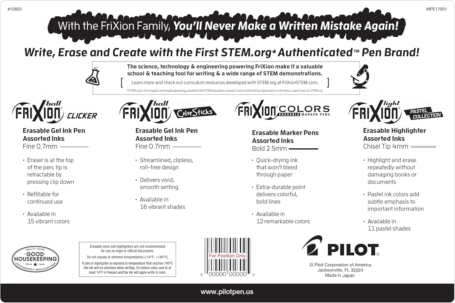 Pilot, FriXion Assorted Erasable Gel Ink Pens, Marker Pens & Highlighters, Pack of 17, Assorted Colors