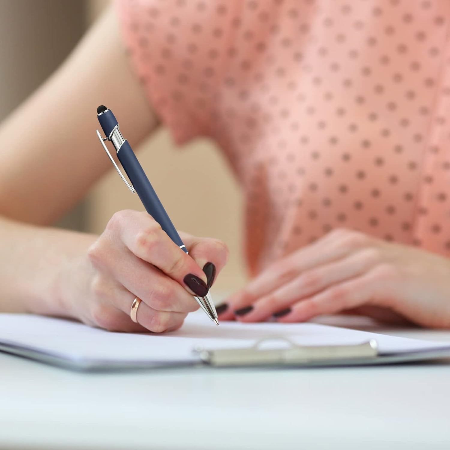 - ❤【Plenty of Pens】Get a pack of 12 blue ballpoint pens with stylus tips, so you'll always have a pen on hand when you need it. Each pen is 5.5 x 0.4 inches, the perfect size for comfortable writing.