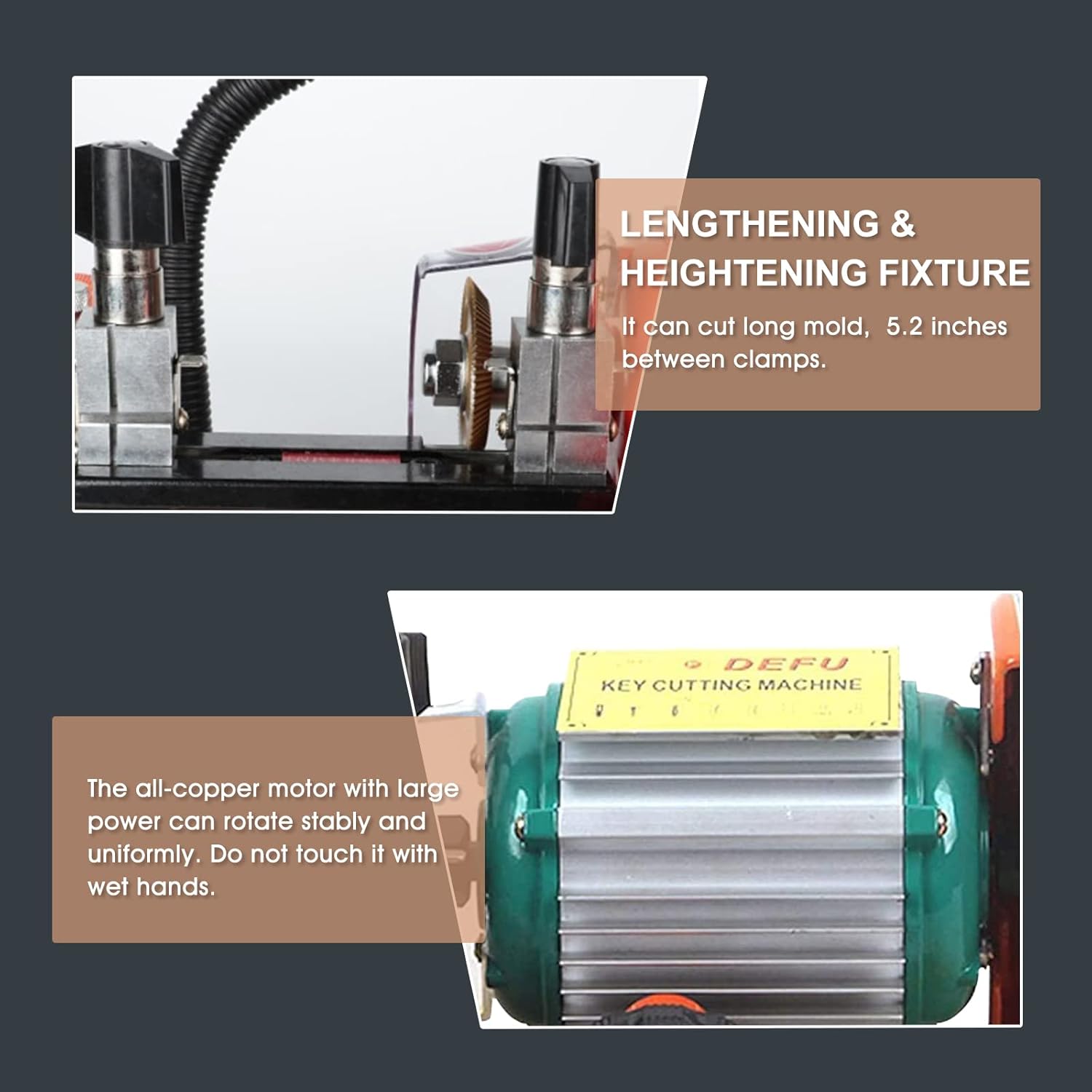 - Dual Fixtures, Extended Capacity – Lengthened & heightened all-steel fixtures hold blanks securely; up to 5.2 in between clamps for longer keys/molds; easier alignment and safer operation.