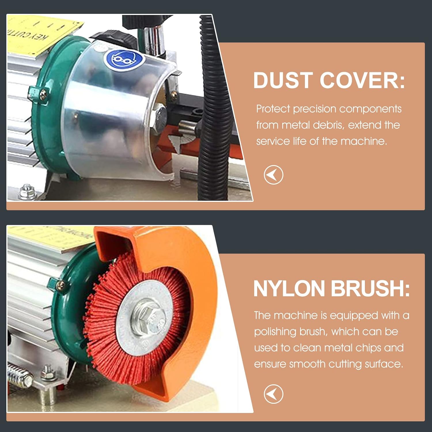 - Cleaner, Safer Operation – Dust cover protects precision parts from metal chips; nylon brush deburrs and polishes the edge for a smooth finish. (Keep hands dry; do not touch while running.)