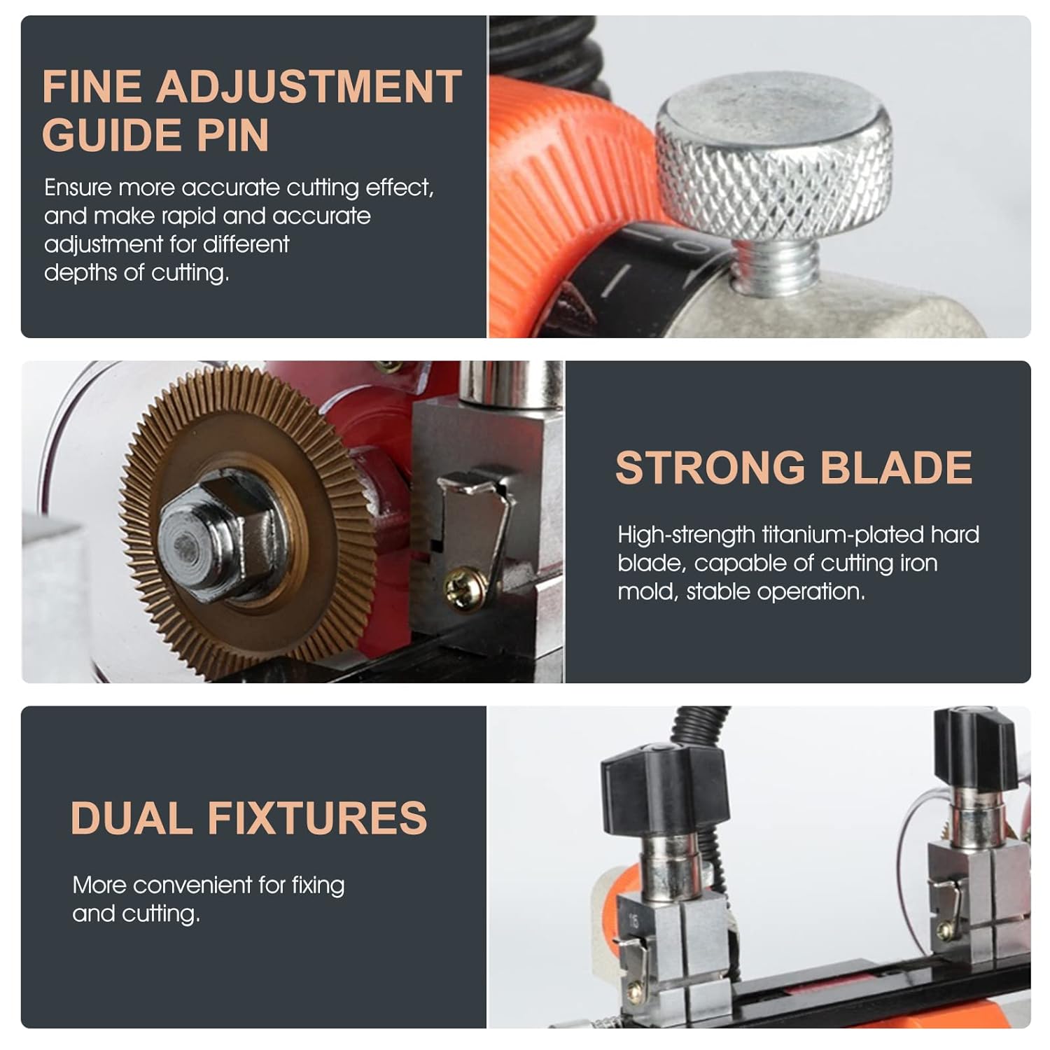 - Precision Micro-Adjust & Pointer – Fine-adjustment guide pin with clear pointer lets you set cutting depth quickly and accurately for repeatable, clean key cuts.