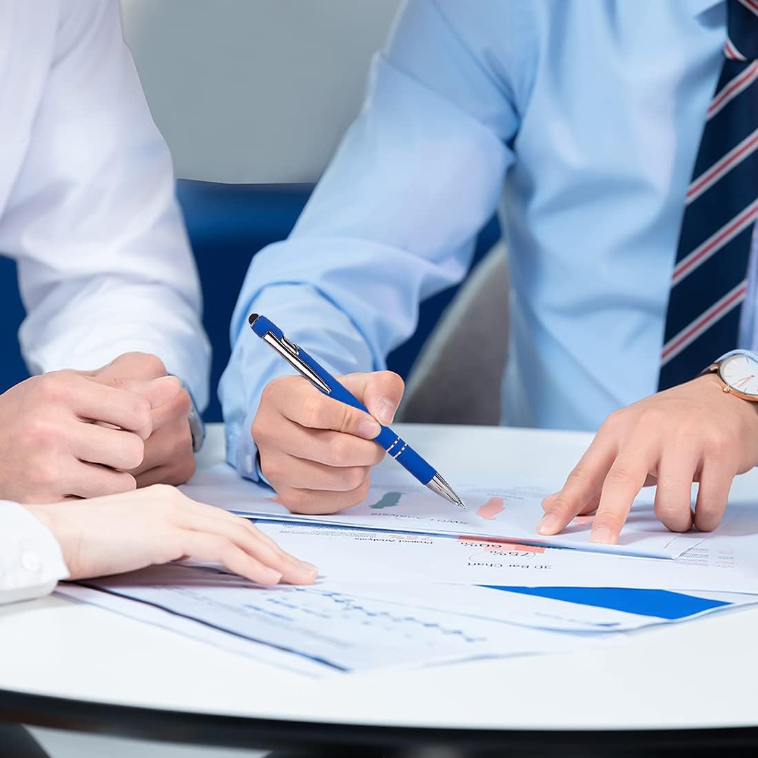 Ballpoint Pen with Stylus Tip, Soft Touch Click Metal Pen, 1.0mm Medium Point, Black Ink, 12 Count(Blue)
