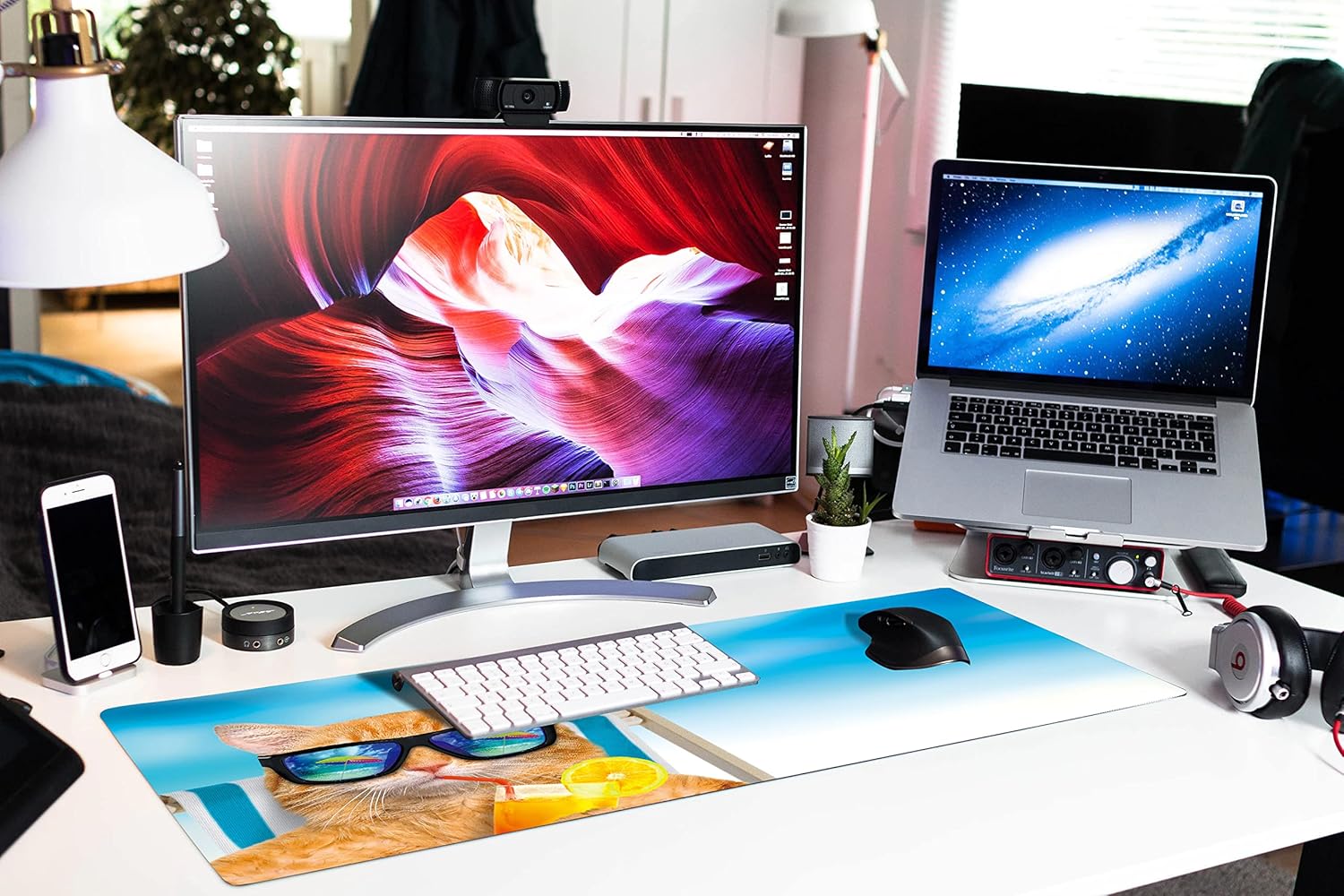 - 【 Extended Large Size 】Large Mouse Pad Size: 35.4 x 15.7inch,The mouse pad is large enough to hold a keyboard, mouse, tablet, laptop, game pad and other desktop items, you don't have to worry about lack of space, you can move the mouse freely. Ideal for office, gaming or study.