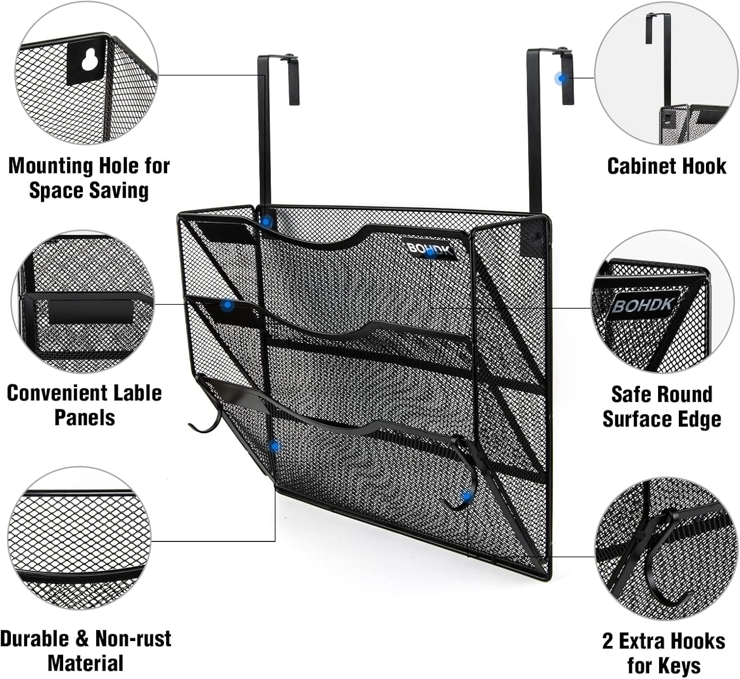 - 【Wall Mount/Door Hanging Organizer】No assembly needed. Equipped with mounting screws and door hooks, the file provides you more creative ways to use it. Not only can you utilize the vertical space anywhere, but also you can hang it on the cabinet door without mounting. Perfect for your bills, tablets, notebooks, portfolios, photos, letters, magazines and so on.