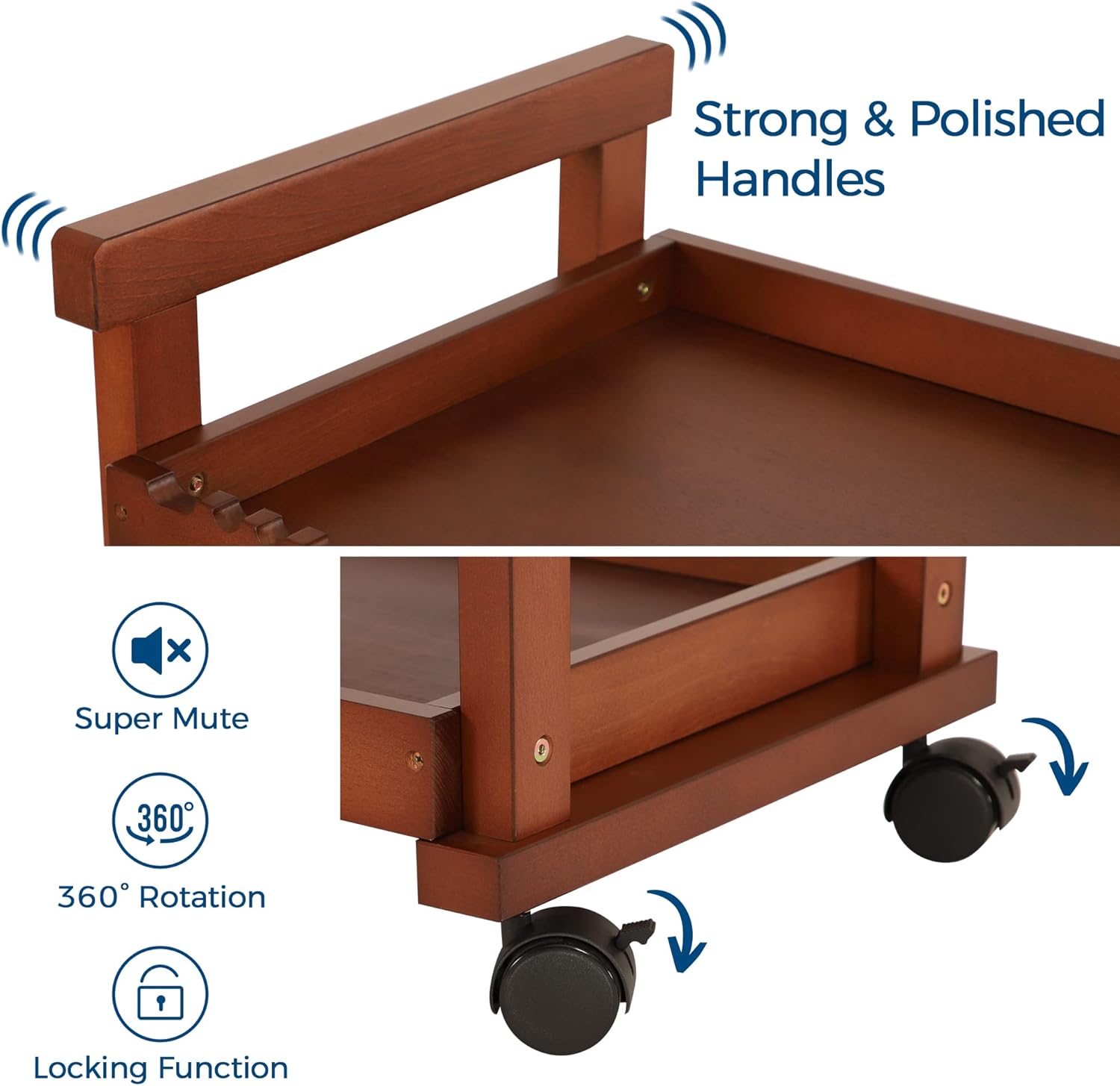VISWIN Art Cart Organizer, Solid Beechwood Art Supply Storage Organizer with Caster Wheels, 3-Tier Multifunctional Rolling Utility Storage Cart for Studio, Classroom, Artists - Walnut