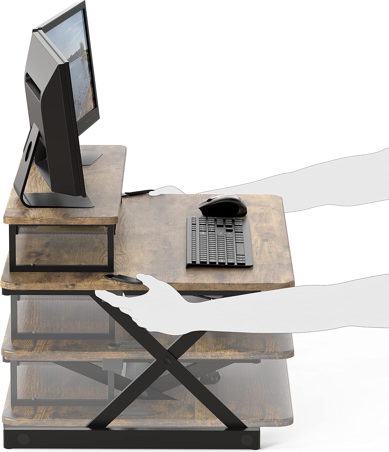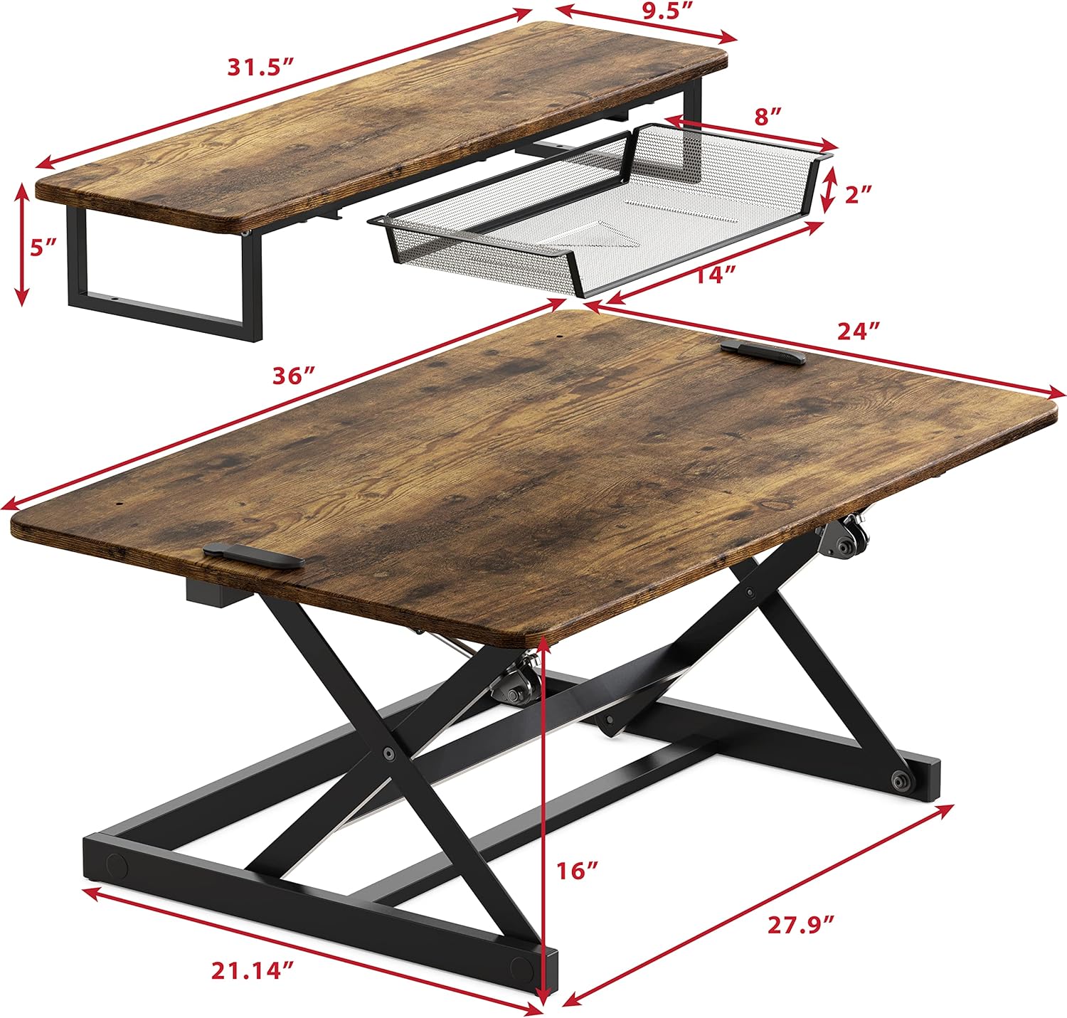 SHW 36-Inch Height Adjustable Standing Desk Converter Sit to Stand Riser Workstation, Rustic Brown