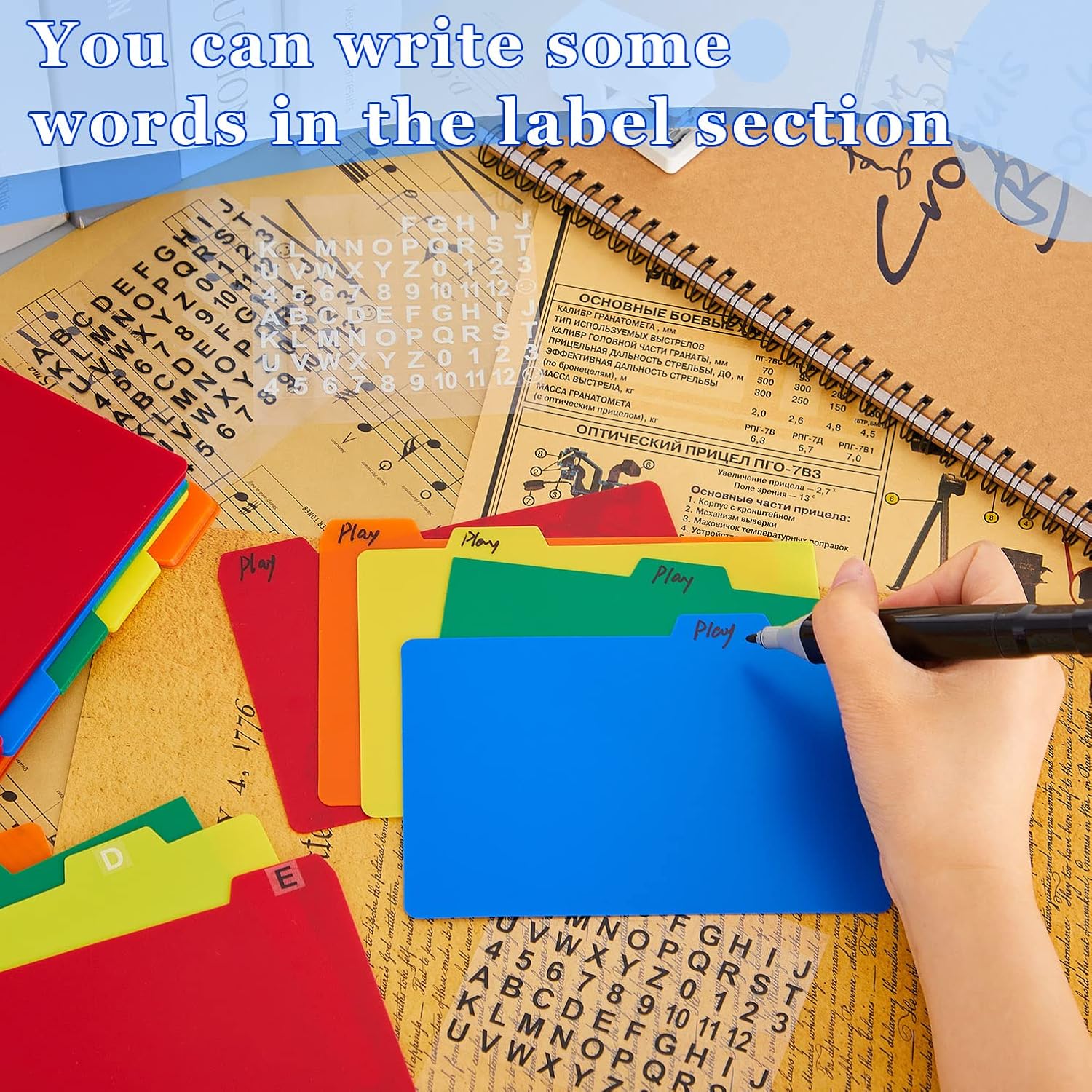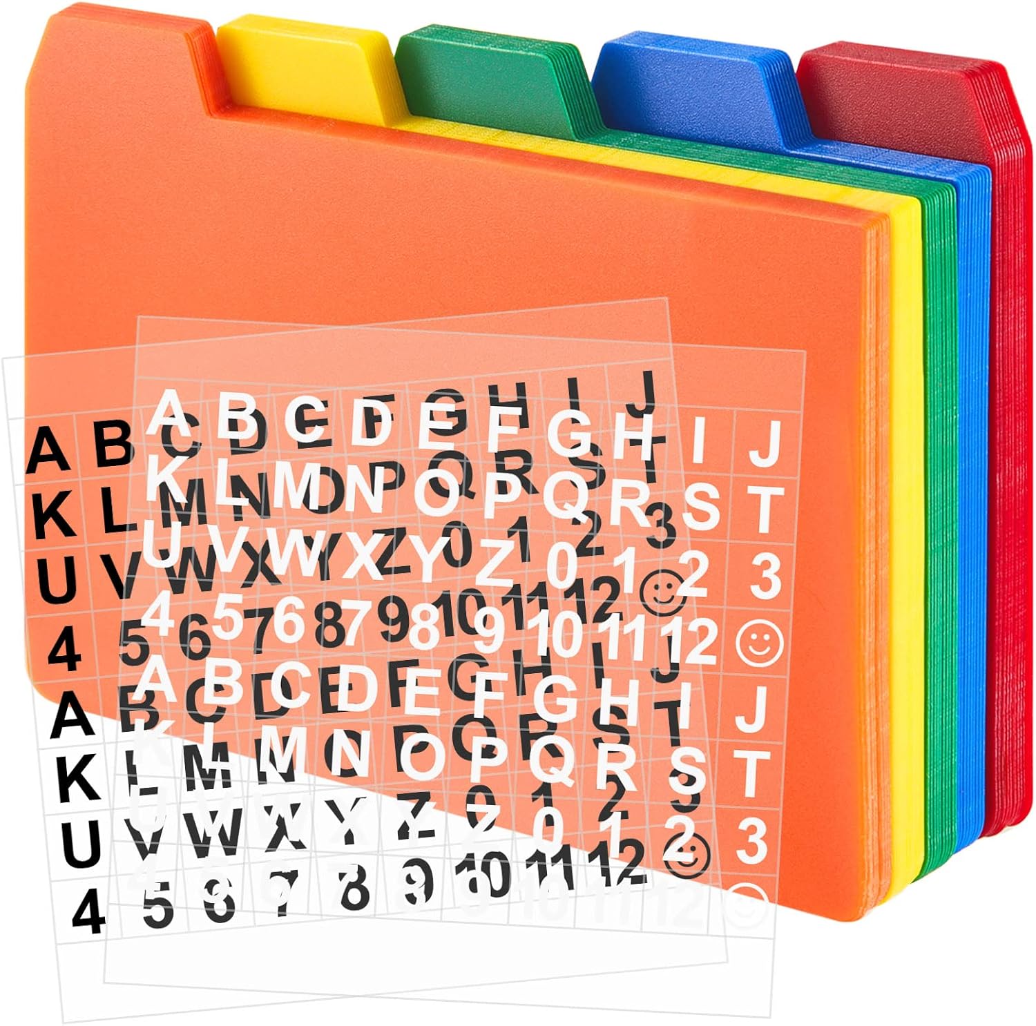 - What You Will Get: you will receive 50 pieces of index card dividers in 5 colors, including orange, red, dark blue, dark green, yellow, 10 per color, 2 stickers of letters and numbers, which can meet your daily use and share with family and partners
