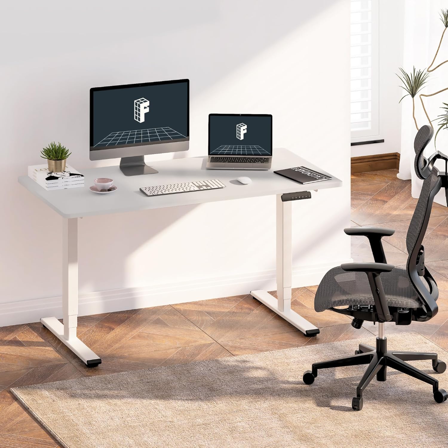FLEXISPOT E6 Essential 3 Stages Dual Motor Electric Standing Desk 48x30 Inch Whole-Piece Board Height Adjustable Electric Sit Stand Desk(White Frame + White Desktop, 2 Packages)