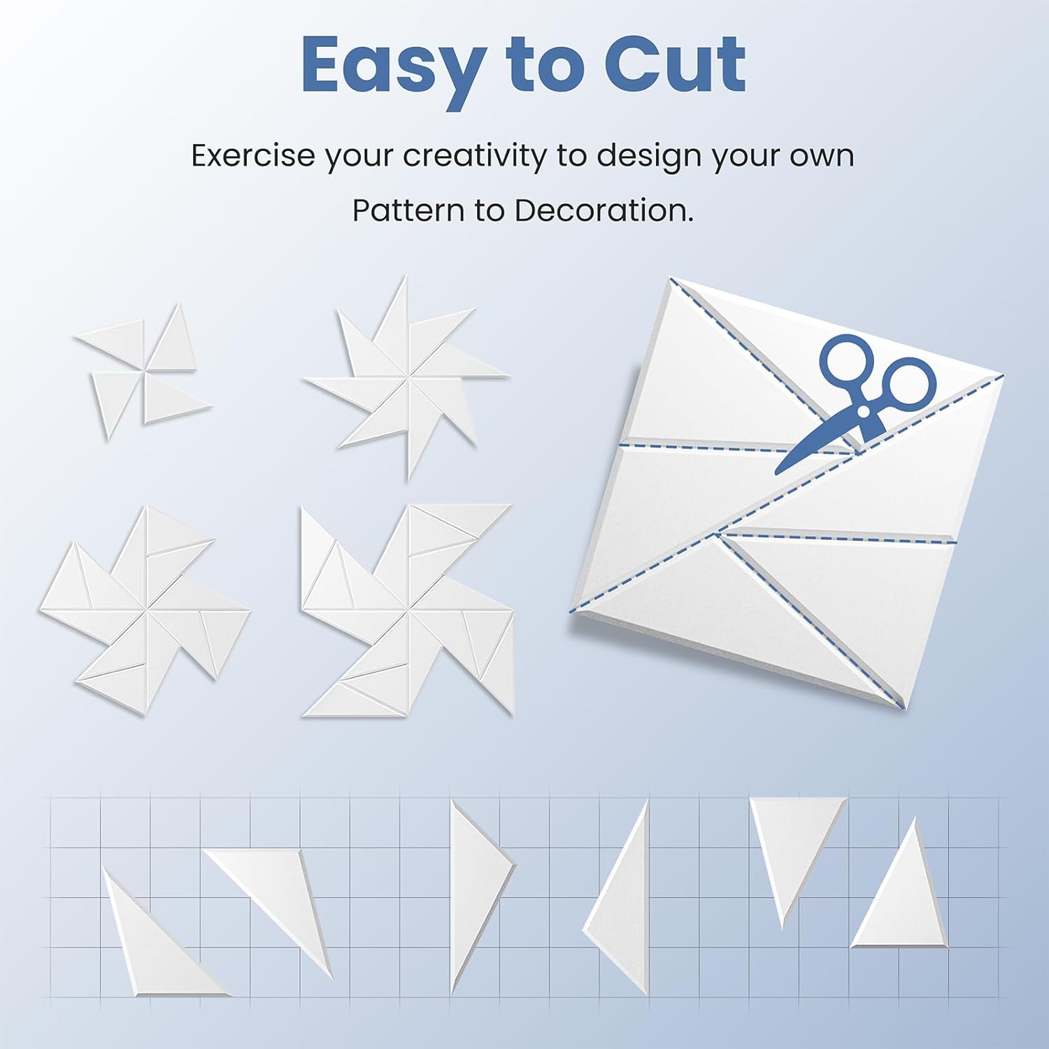 - 👍【Perfect for wall decoration】Be different from other acoustic panels,We have not only upgraded their acoustic performance,but aslo their appearance.Adopt beveled edge and multi-line design.They can be DIY into pinwheel patterns and multi-ring patterns.They absorb unnecessary sound while playing a good role in decorating the wall.Perfect for professional studios, video blogger,game room, podcasting, school,home theaters,offices,etc.