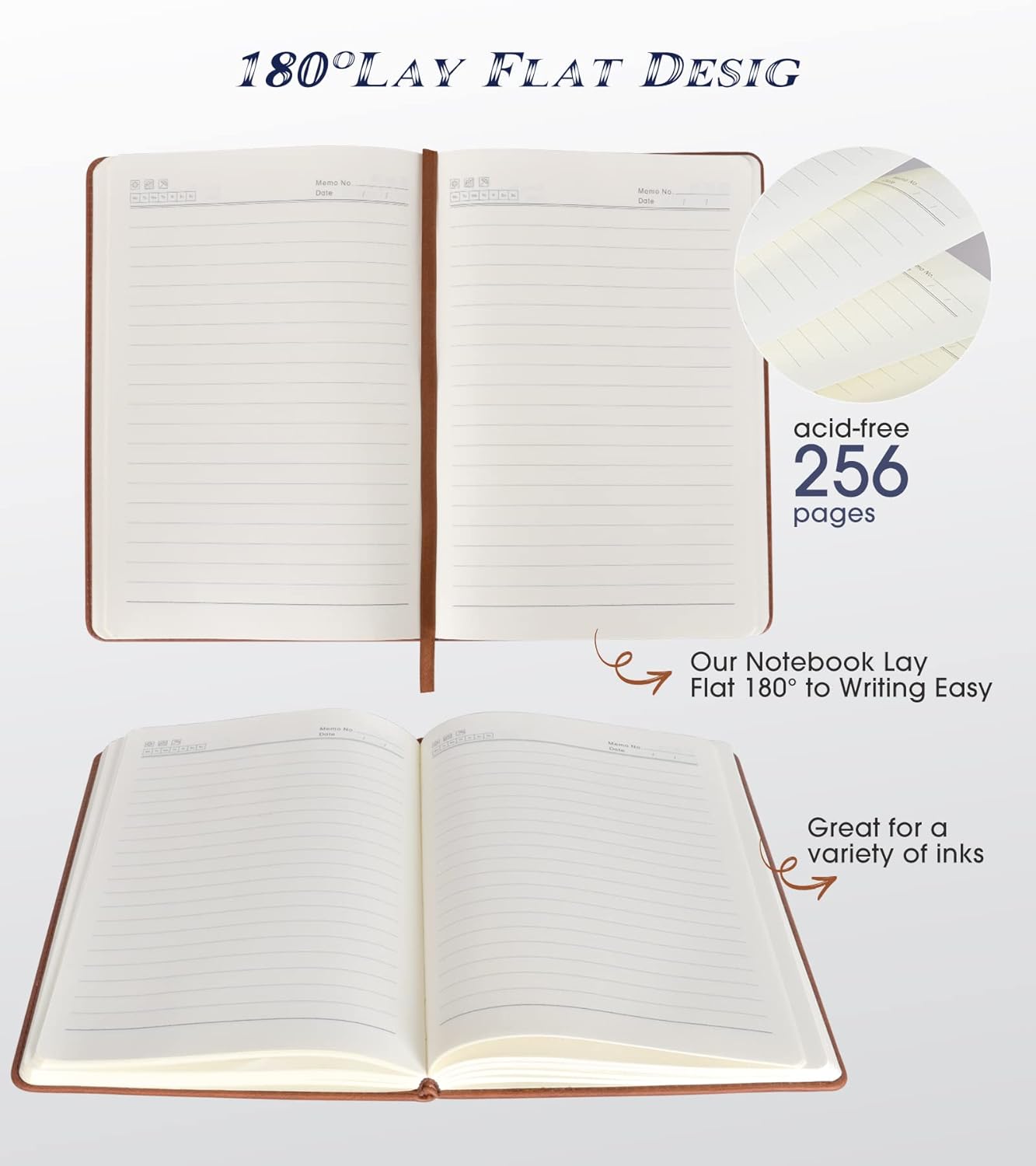 - 【180° Lay Flat Design】The 180° lay flat design makes writing easier, reading more convenient, and taking notes more efficient.At the same time, the hardcover notebook is designed with elastic closure band to make it tightly closed to protect your content, and the inner paper will not be curled and kept flat.