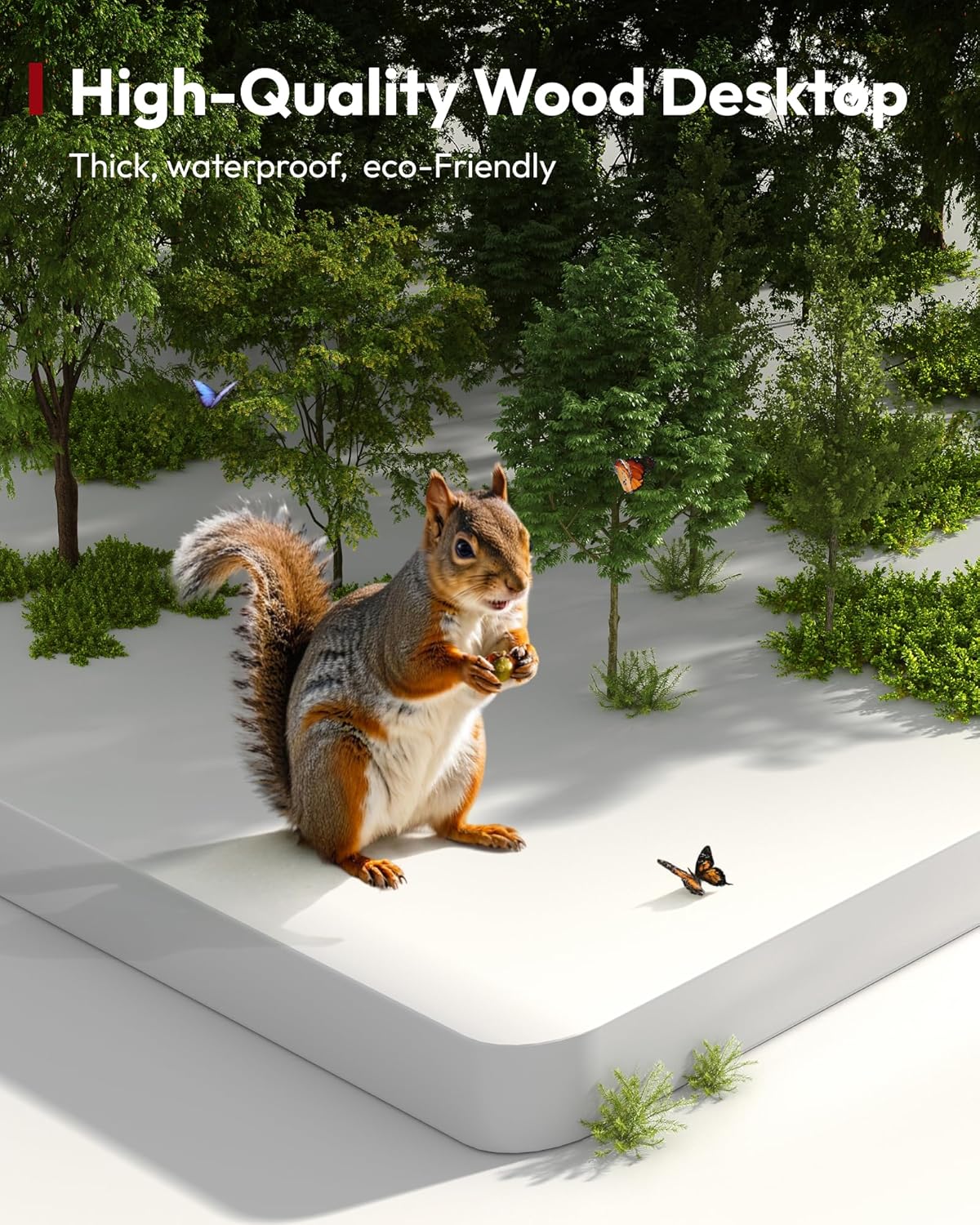 - 48" x 30" Whole-Piece Desktop: Spacious worksurface provides plenty of space for collaboration and creativity, up for any challenge. Easy to put two monitors, laptop, printer, landline and all kinds of interesting knickknacks.