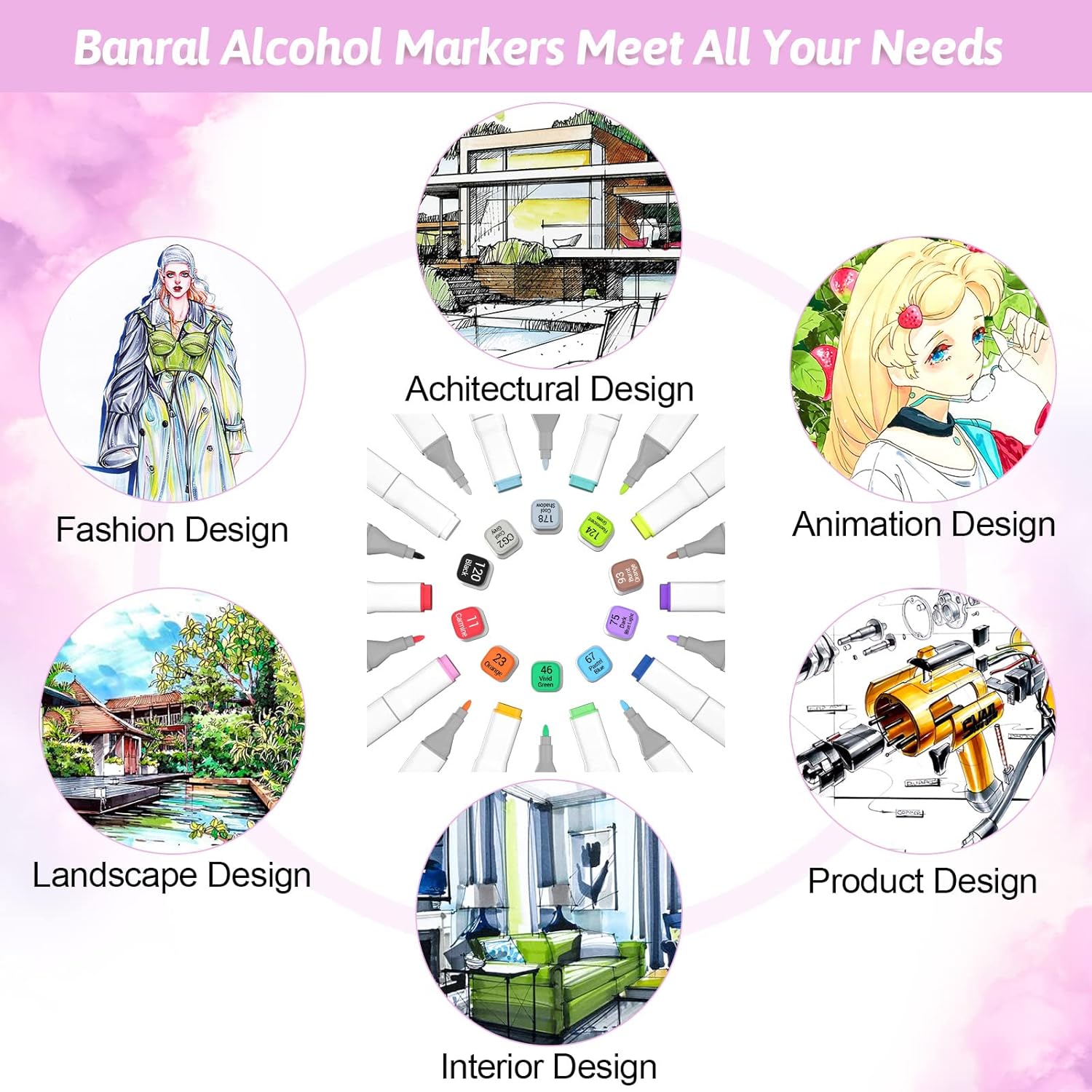 - 【SUPER QUALITY ART MARKERS & SAFE TO USE】Banral alcohol markers is certified by MSDS, SDS, SGS, and ASTM-D4236 international standards, and the ink has little odor, non-toxic and acid-free. Safe and environmentally friendly for you and your children. Banral artist markers are perfect gifts for kids, adult, Christmas, Thanksgiving, school students, families, friends sketching card illustration.