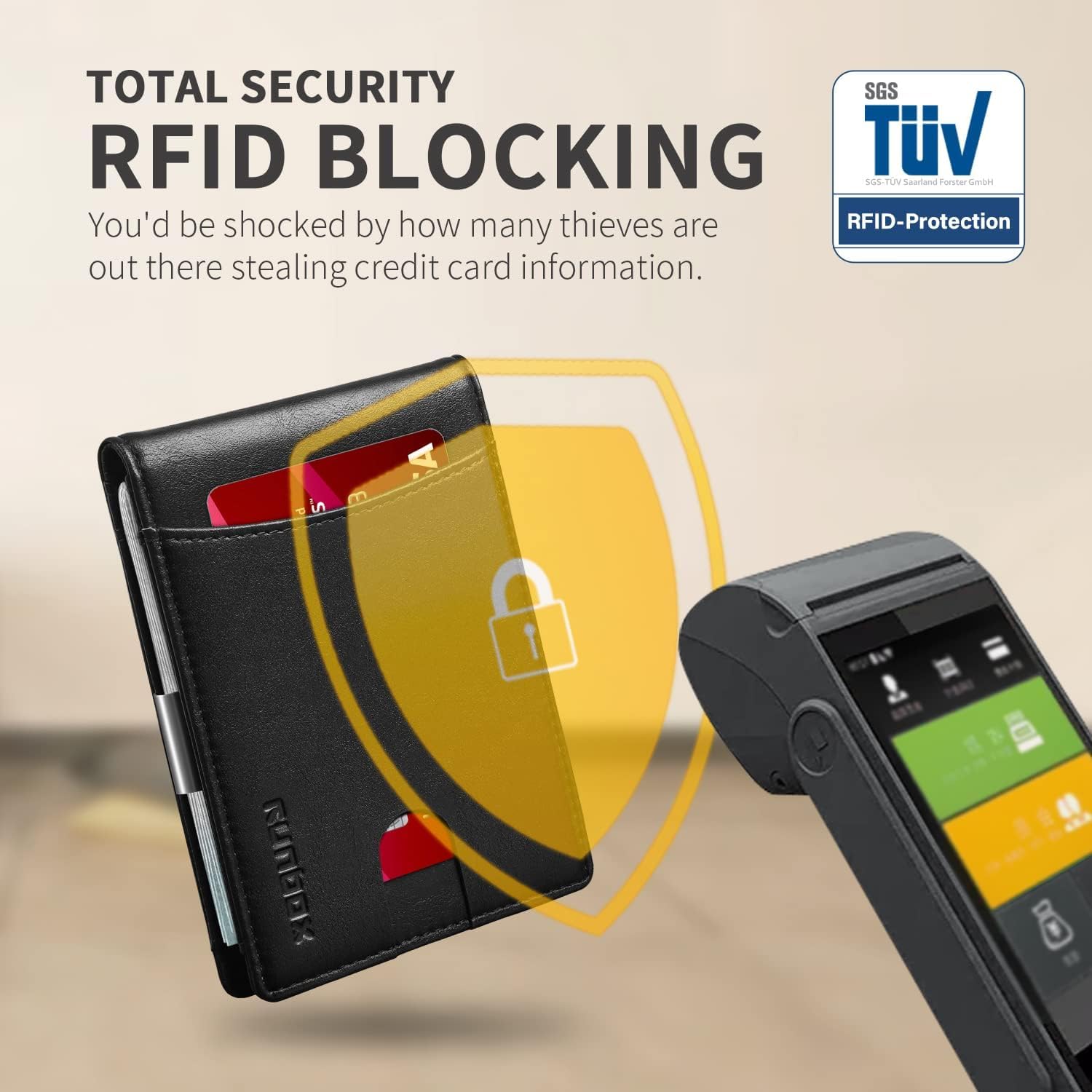 • RFID Anti-Theft SECURITY - This slim wallet for men is equipped with German Institute Certified RFID Security technology, a unique metal composite, engineered specifically to block 13.56 MHz or higher RFID signals to protect the valuable information and privacy
