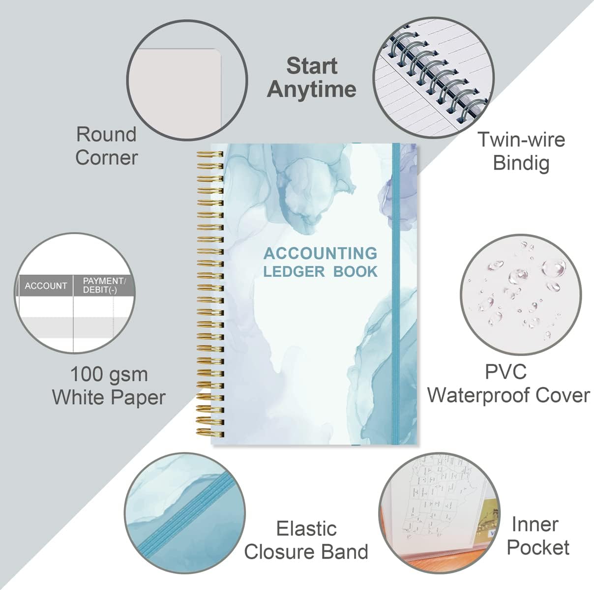 Accounting Ledger Book - A5 Ledger Book for Bookkeeping, Small Businesses & Personal Use, Expense Tracker Notebook for Tracking Money, Expenses, Deposits & Balance, 5.8" x 8.4", Watercolor Blue