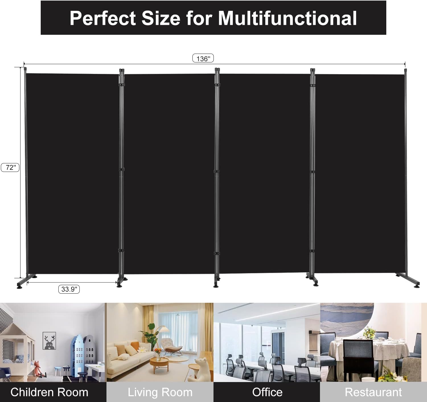- Round Pad Room Divider: The Room Divider is flexible and easy to move, it's can be divided in to 1-4 panels to meet all kinds of scenes by installing or removing plastic connectors. The metal base with round pad fits better to the ground and provides better grip for a more stable stand. You can use our room dividers to separate bedroom, living room, dorm, garage, study, office, resturant, block strong light at the window, as well as work as zoom meeting background