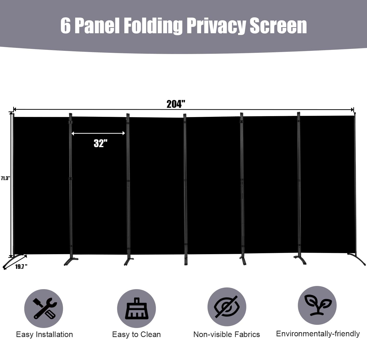 Room Divider 6FT Folding Privacy Screens, Partition Room Dividers w/Freestanding Design, Portable Wall Divider for Room Separtation, Fabric Screen Panel for Home Office Dorm (Black, 6 Panel)
