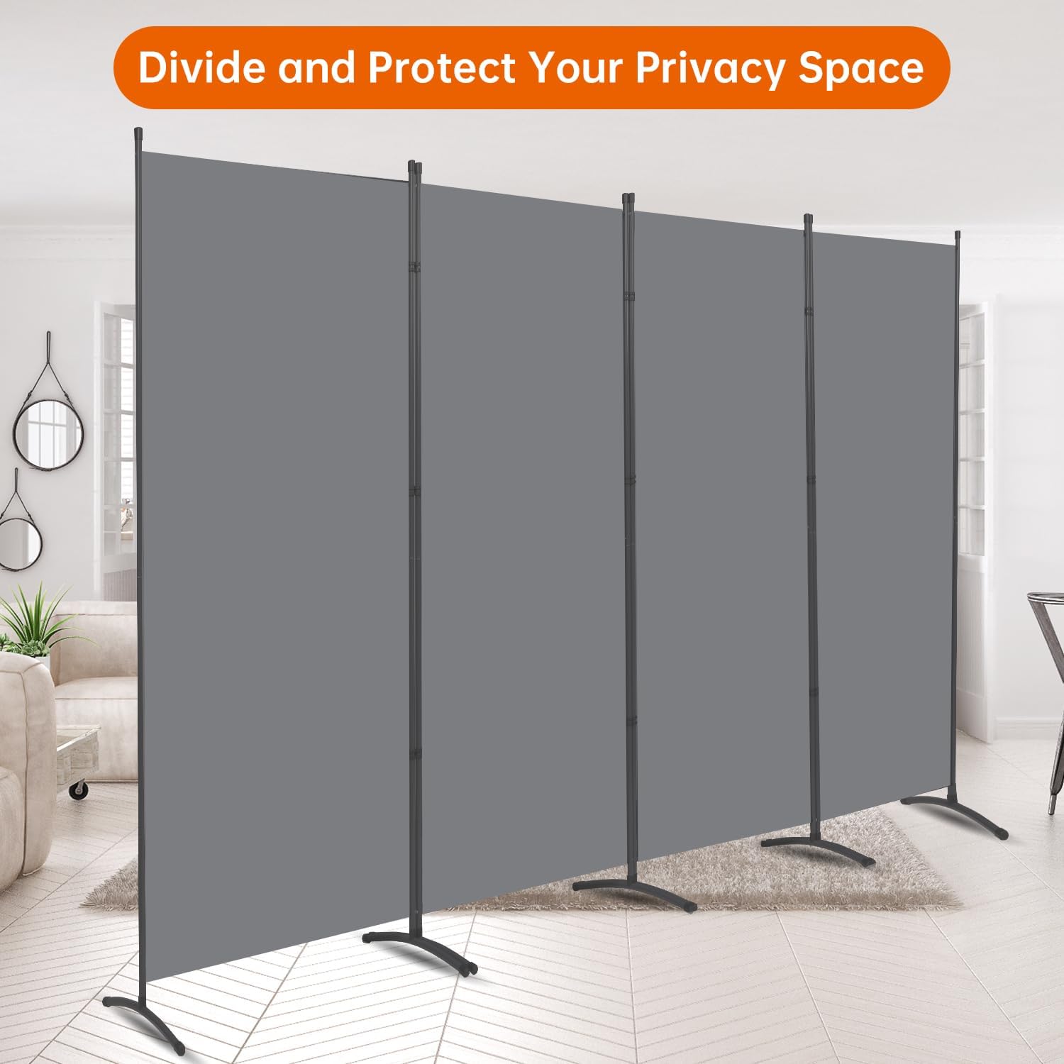 Room Divider 6FT Folding Privacy Screens, Partition Room Dividers w/Freestanding Design, Portable Wall Divider for Room Separtation, Fabric Screen Panel for Home Office Dorm (Grey, 4 Panel)