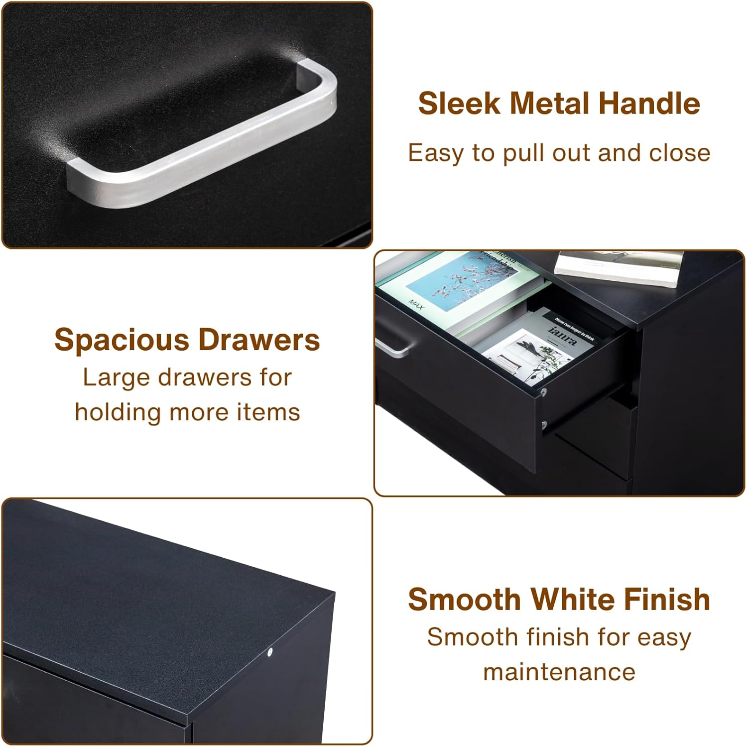 Karl home 3 Drawer Dresser, Modern Storage Chest of Drawers, Wood Bedside Table Night Table for Bedroom,Living Room (Black)