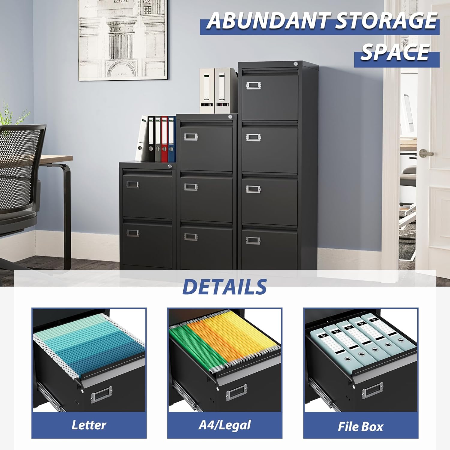 - 【Anti-Tilt Design】This office file cabinets has a lock that can lock all four drawers and comes with two keys. It helps you keep your valuables and documents safe. In the unlocked state, only one drawer can be pulled out at a time, preventing the movement of multiple drawers causing the overall center to shift and the box to fall.