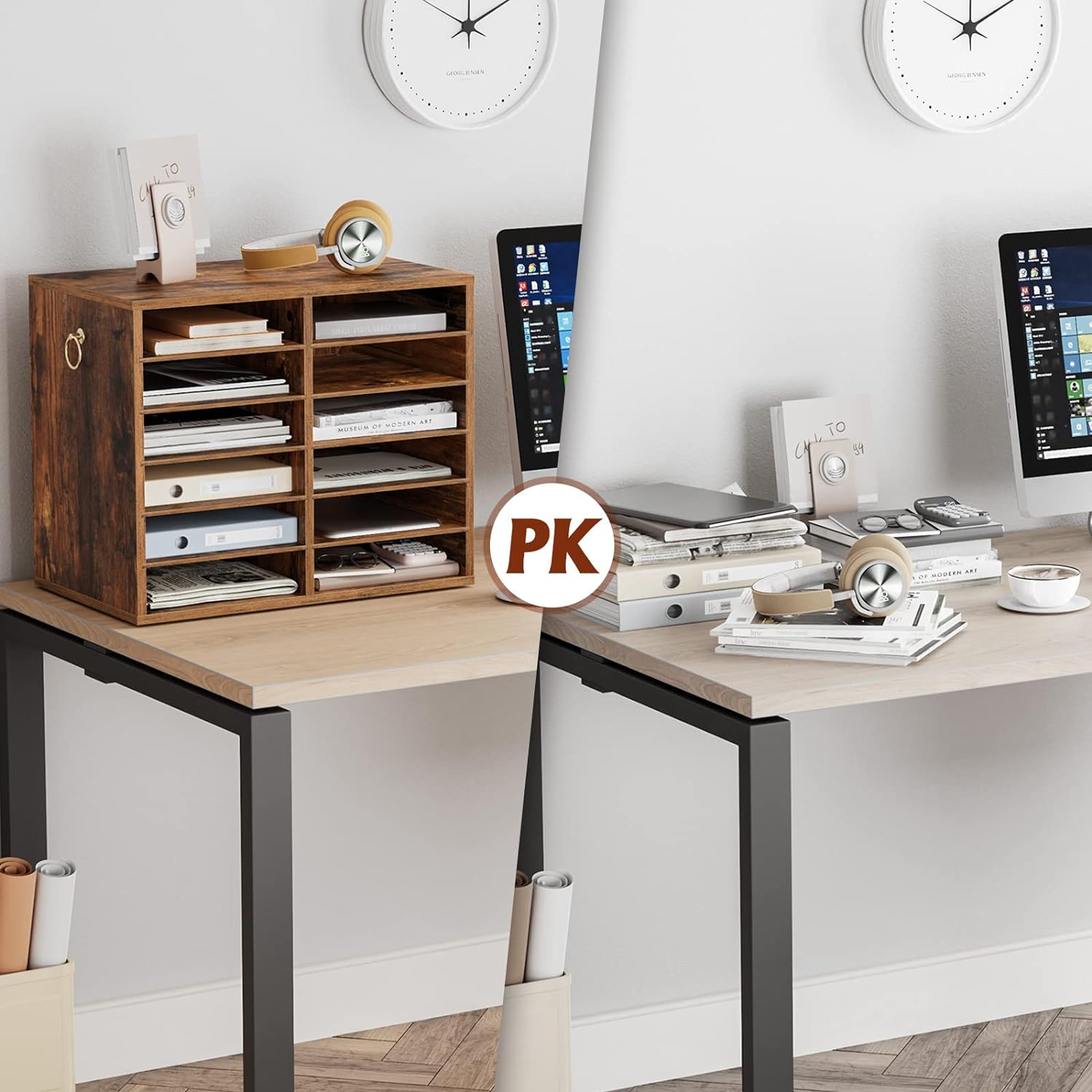 HOOBRO Literature Organizers, 12 Compartments Office Mailbox with Adjustable Shelves, Wood Countertop Literature Sorter for Office, Home, Classroom, Mailrooms Organization Rustic Brown FG12WF01