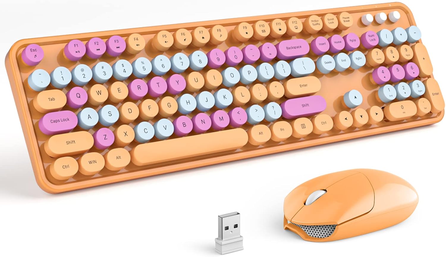 MOFII Wireless Keyboard and Mouse Combo, Orange Retro Keyboard with Round Keycaps, 2.4GHz Dropout-Free Connection, Cute Mouse for PC/Laptop/Mac/Windows XP/7/8/10 (Orange-Colorful)