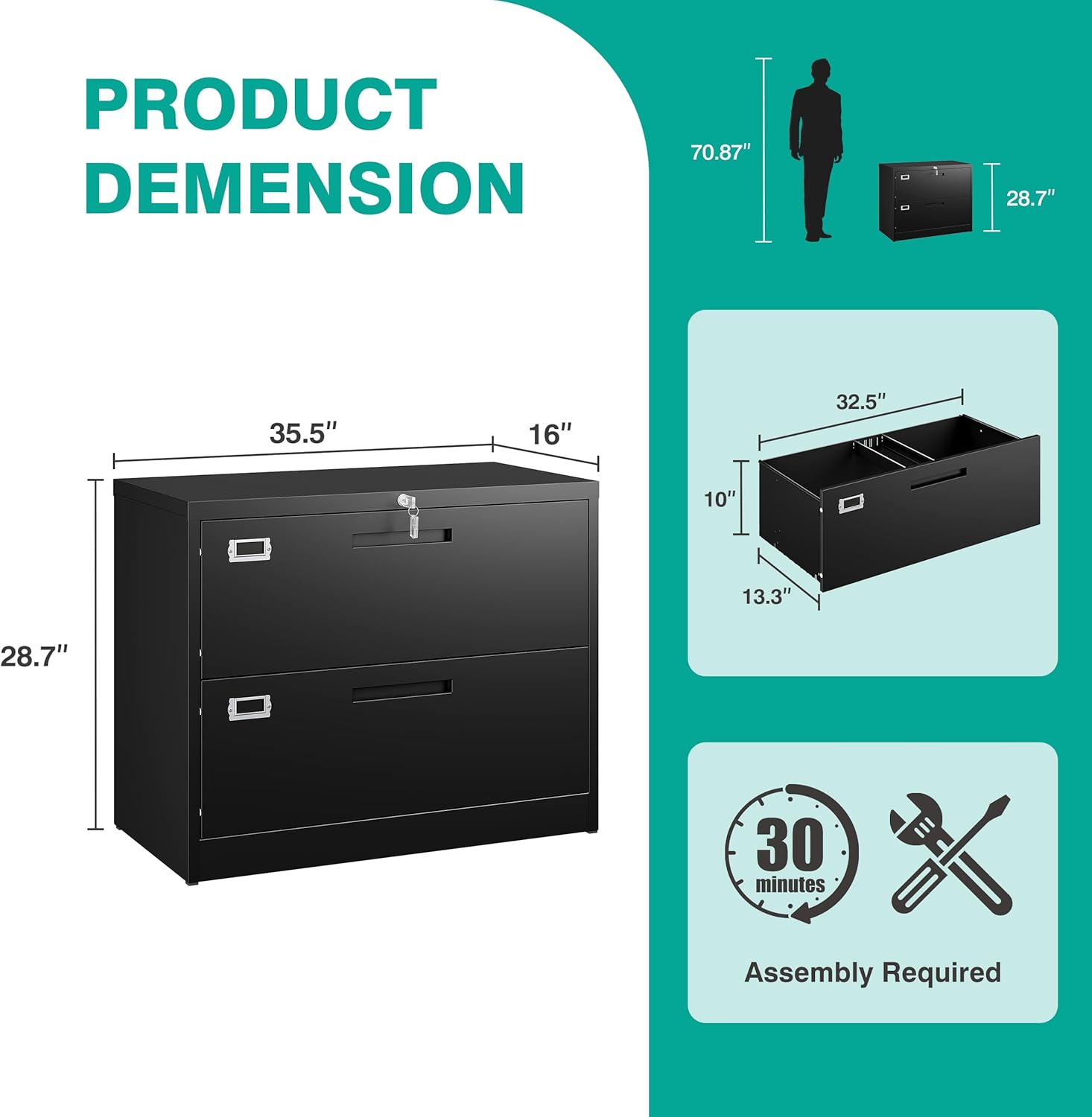 - 【Heavy file cabinet】: Filing cabinet is sturdy and durable with an all-metal design;Coated with Electrostatic phosphorus free epoxy spray layer, making it very strong and immune to corrosion and rust; Top of the office lateral filing cabinet can bear a maximum weight of 220lbs, and each drawer can bear a weight of 110 lbs.The solid construction makes the cabinet durable and ideal for long time use in home or office.