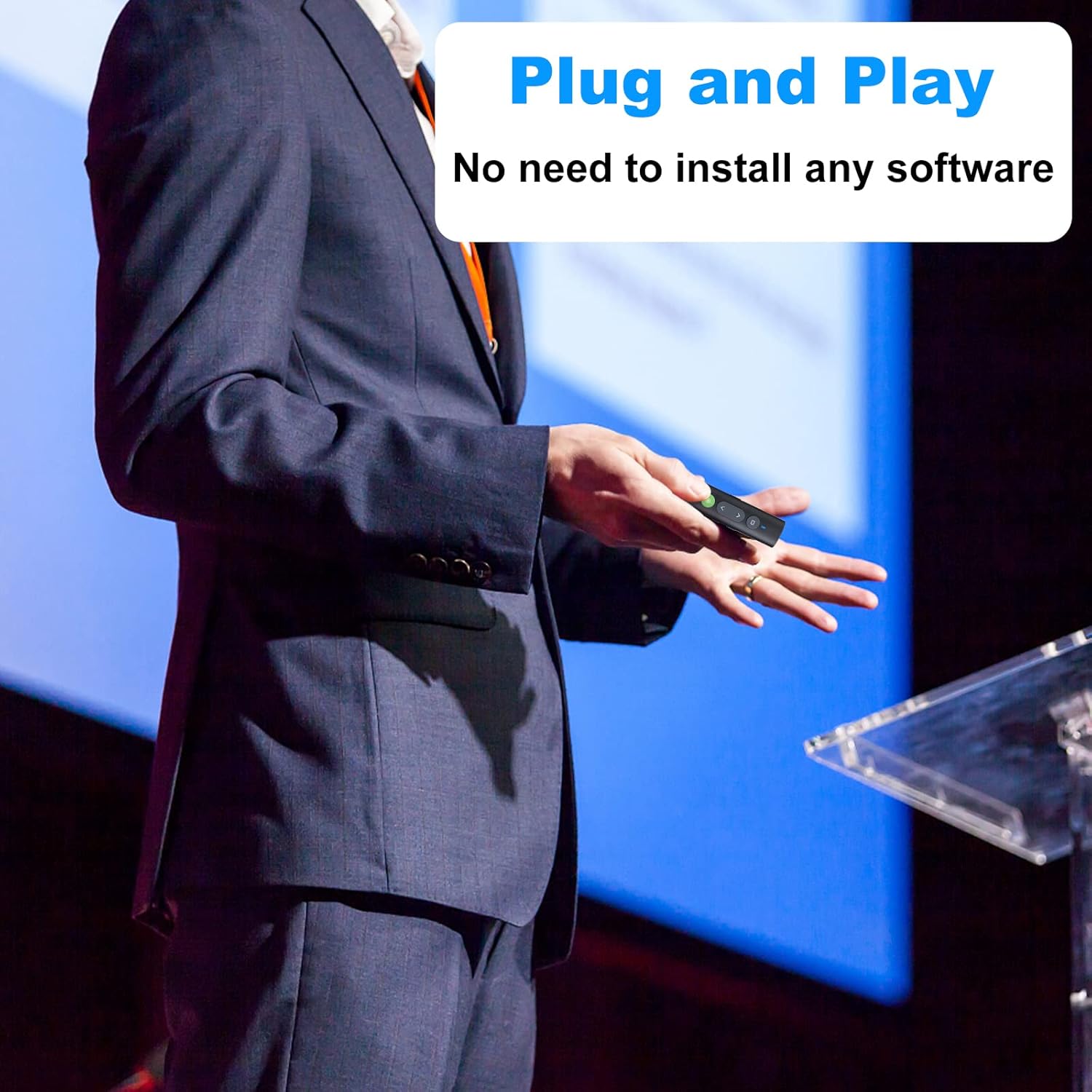 - [Easy to Use] No need to install any software, just plug and play. Wireless presentation clicker connection is fast and accurate, so you have no frustrations during the presentation. The clicker for laptop presentations supports red pointer, page up/down, black/full screen, volume up/down.