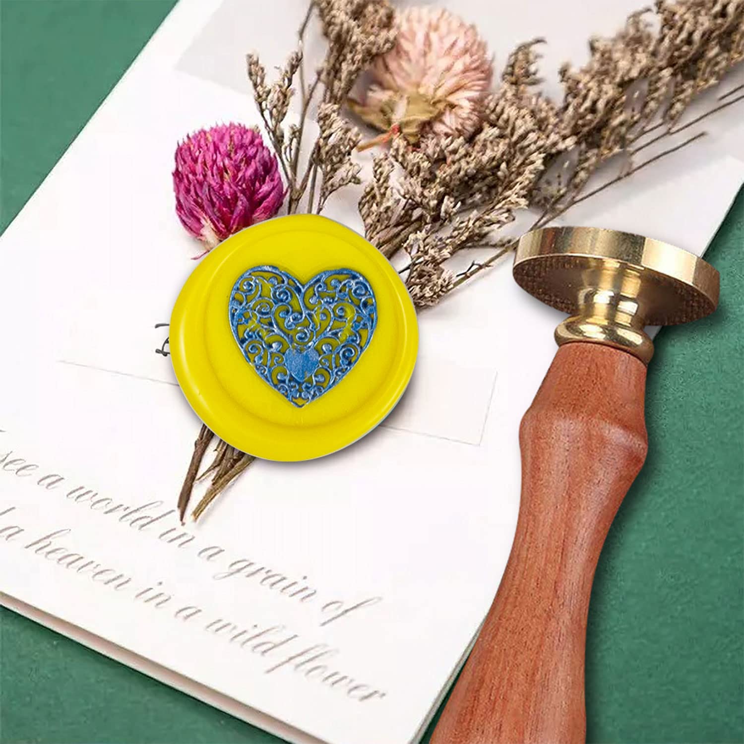 Wax Seal Stamp, Heart Wax Sealing Stamp with Removable Brass Head and Wooden Handle, 0.98" Diameter, 3.54" Length