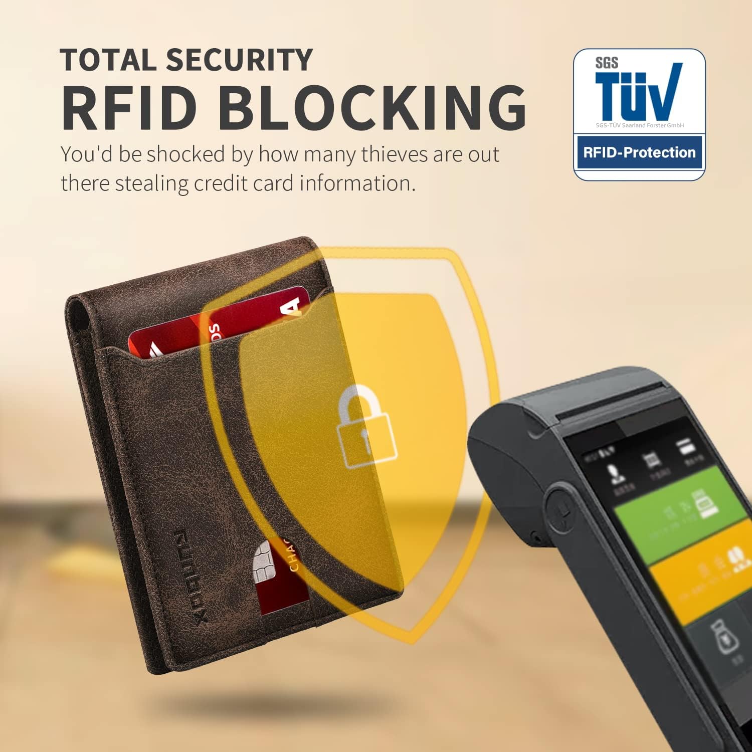 • RFID Blocking - This wallet for men are designed by German designer, made of genuine leather material, durable, wear- resistant and scratch-resistant. Our wallets block the 13.56 MHz band and protect against data theft by RFID scanners