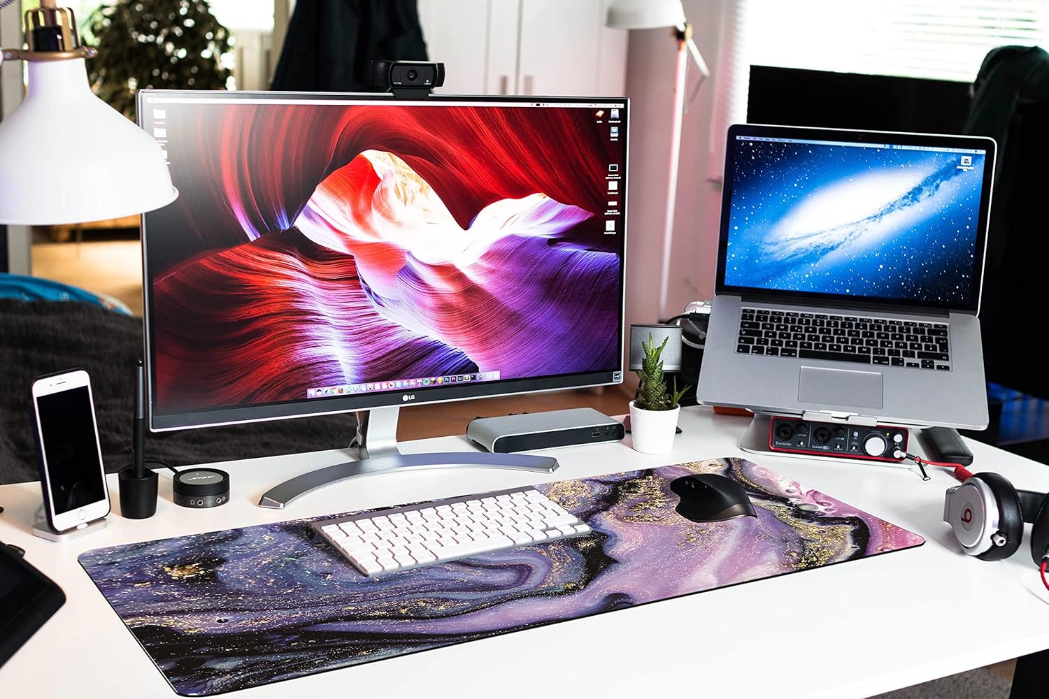 Desk Mat, Purple Marble Pattern Large Desk Pad Extended Gaming Mouse Pad, 35.4 x 15.7inch Mouse Pad with Non-Slip Rubber Base Stitched Edges, Home Office Decor for Women Girls Men Boys