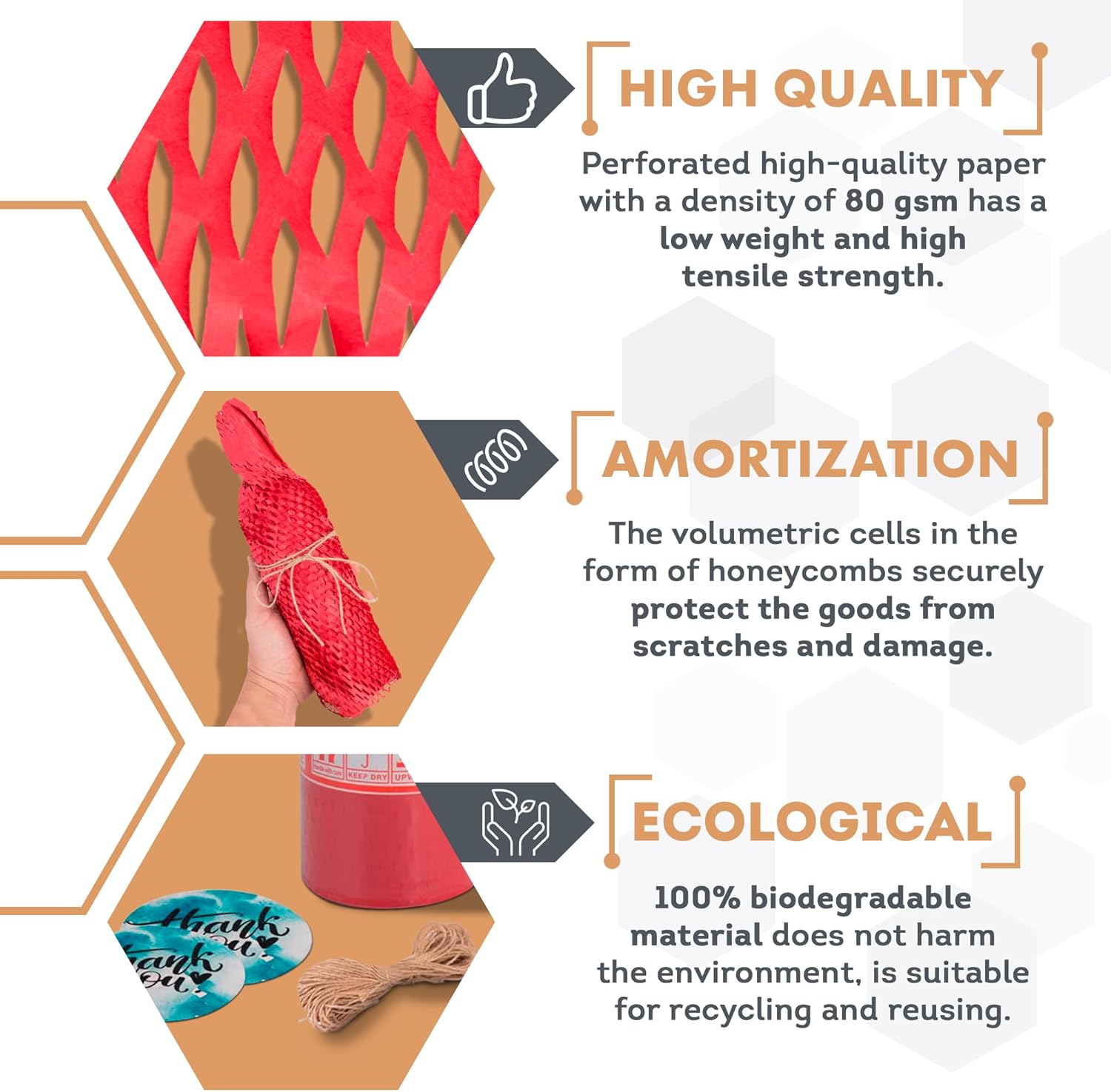 Red Honeycomb Packing Paper for Moving Breakables, 15 Inch x 100 Feet. Fragile Shipping Supplies. Perforated Packing Materials for Fragile Items. Moving Paper Wrap. Eco Friendly Packaging