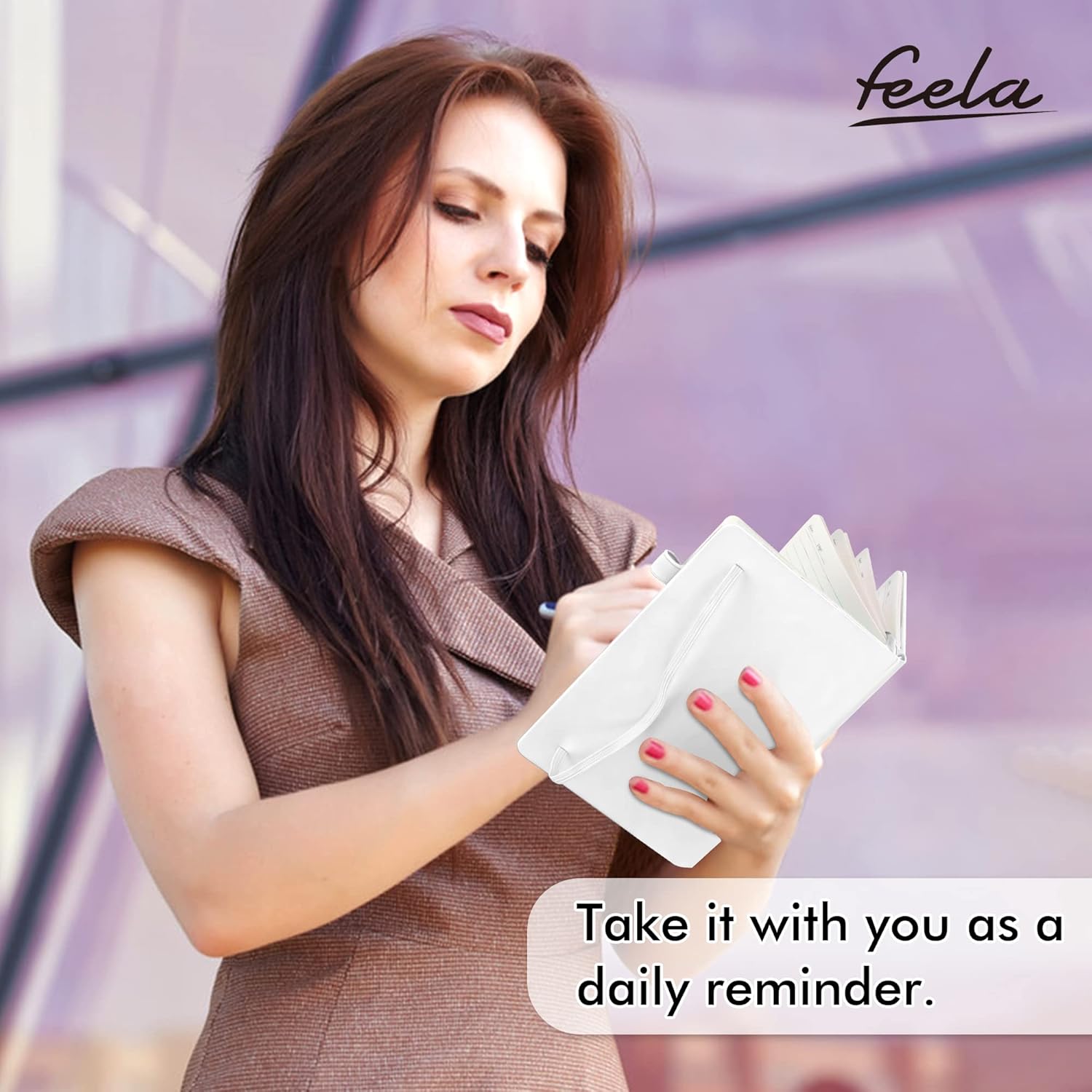 feela College Ruled Notebooks, 24 Pack Business Notebook Hardcover Lined Writing Journal with Pen Holder for Men Women Note Taking, with 24 Black Pens, 120 GSM, 5.1”x8.3”, A5, White