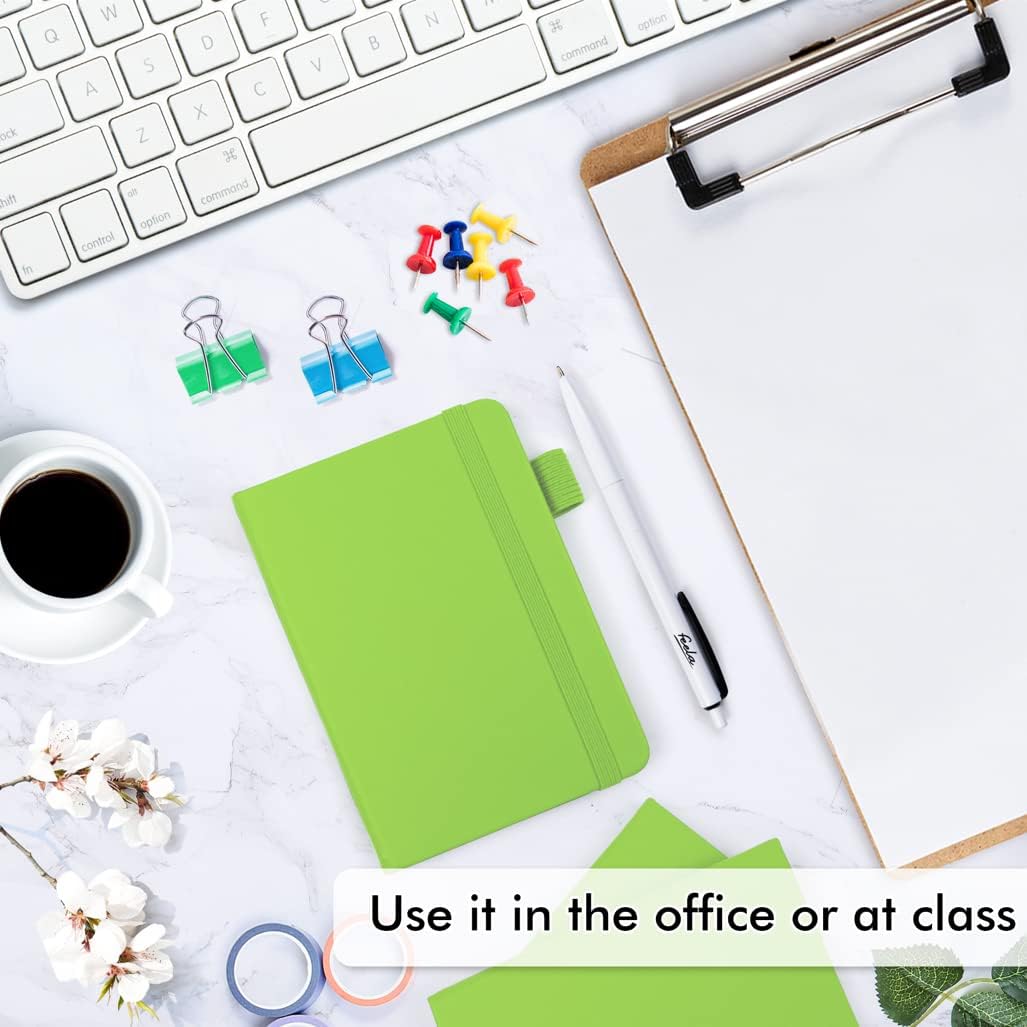 feela 3 Pack Pocket Small Notebook Journals, Mini Cute Memo Notepad Hardcover College Ruled Lined Journals with Pen Holder for Women Girls Office School, with 3 Black Pens, 3.5”x 5.5”, A6, Green